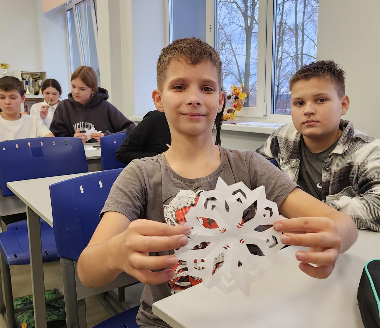Школьники изготовили для защитников Отечества символичные подарки — бумажные снежинки, вырезанные по специальным схемам. На каждом изделии ребята оставили свои искренние пожелания бойцам. В ближайшее время эти трогательные послания, прикрепленные к окопным свечам, будут отправлены в зону СВО в составе гуманитарного груза, чтобы создать праздничное настроение в преддверии Нового года.
