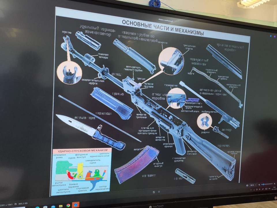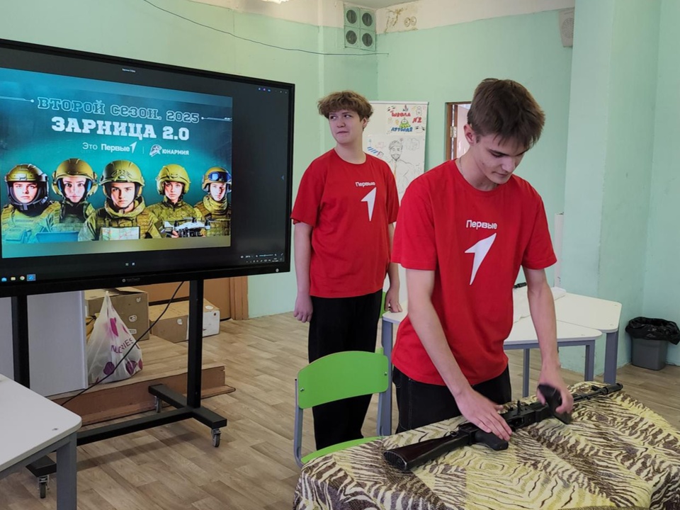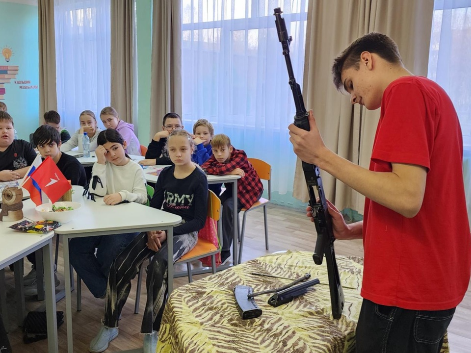 Так, в школе №2 для учащихся 5 класса прошел мастер-класс по сборке и разборке автомата Калашникова. Учащиеся постарше рассказали, из каких деталей состоит это оружие и как работают его механизмы. Подробно показали схему по разборке и сборке. Согласно нормативам, чтобы получить пятерку, на это должно уходить не более 40 секунд. После этого младшие ребята попробовали сделать это.