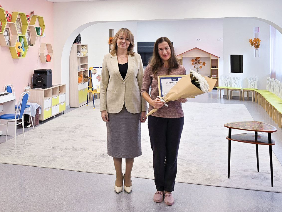 Так, педагогическому коллективу детского сада в микрорайоне Ожерелье вручили благодарственное письмо за профессионализм и высокое качество работы.