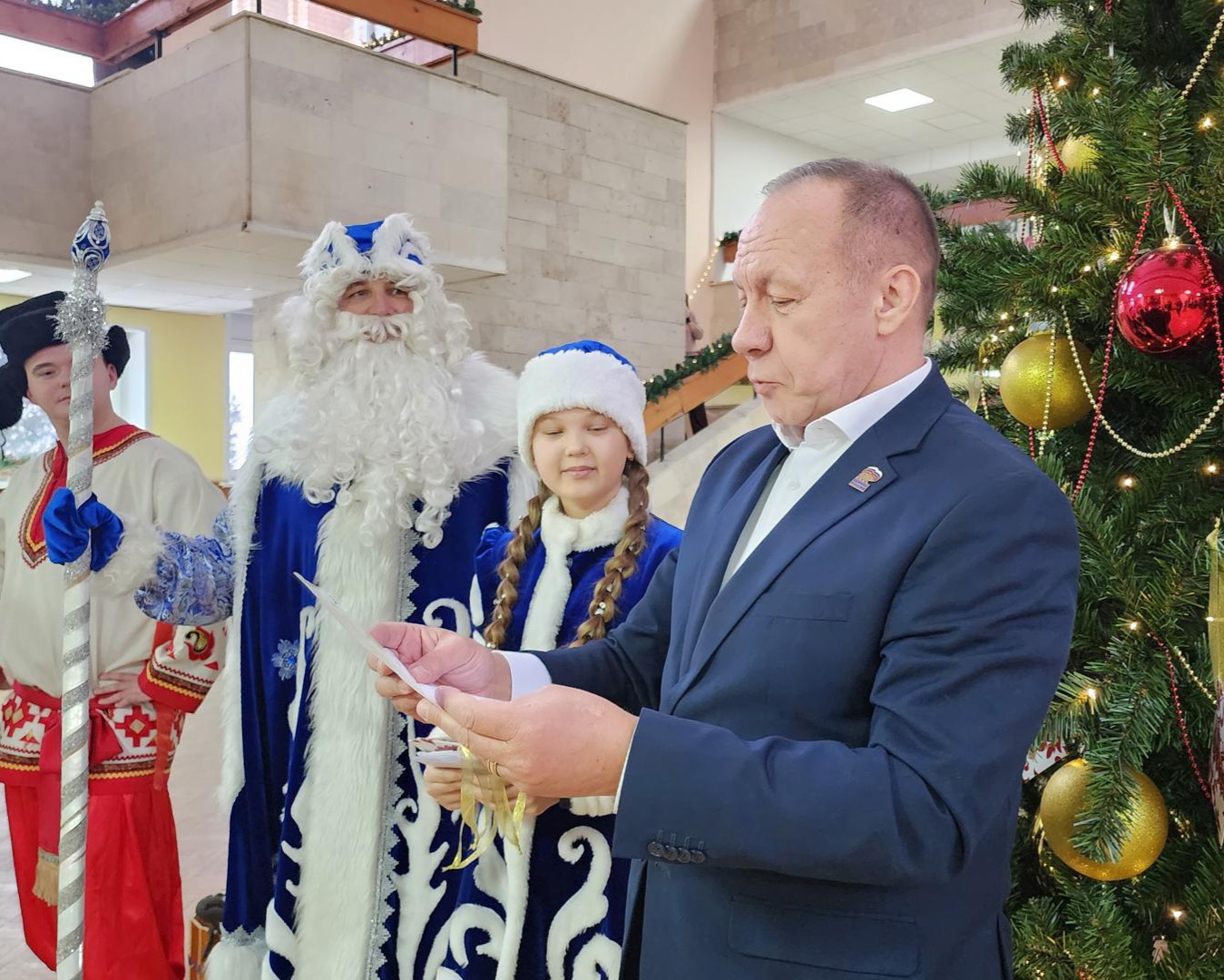Торжественная часть прошла в администрации округа у большой новогодней елки. Здесь ребят ждали Дед Мороз, Снегурочка, веселые игры и, конечно, долгожданные сюрпризы. Финал мероприятия стал самым трогательным моментом. Конверты с детскими письмами, висевшие на ветвях, снимали и зачитывали вслух почетные гости — глава округа Роман Пичугин, руководители силовых структур и местных предприятий.