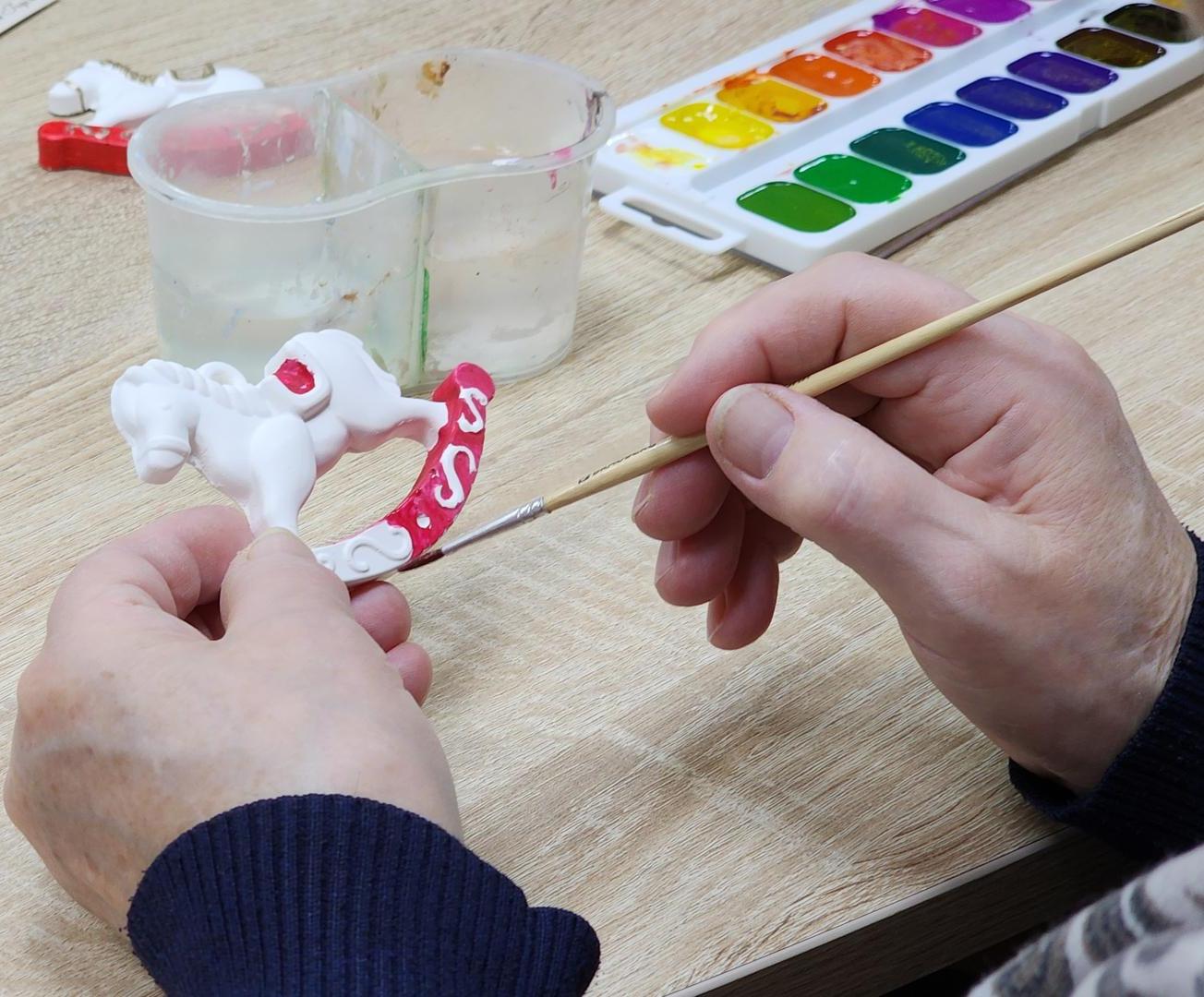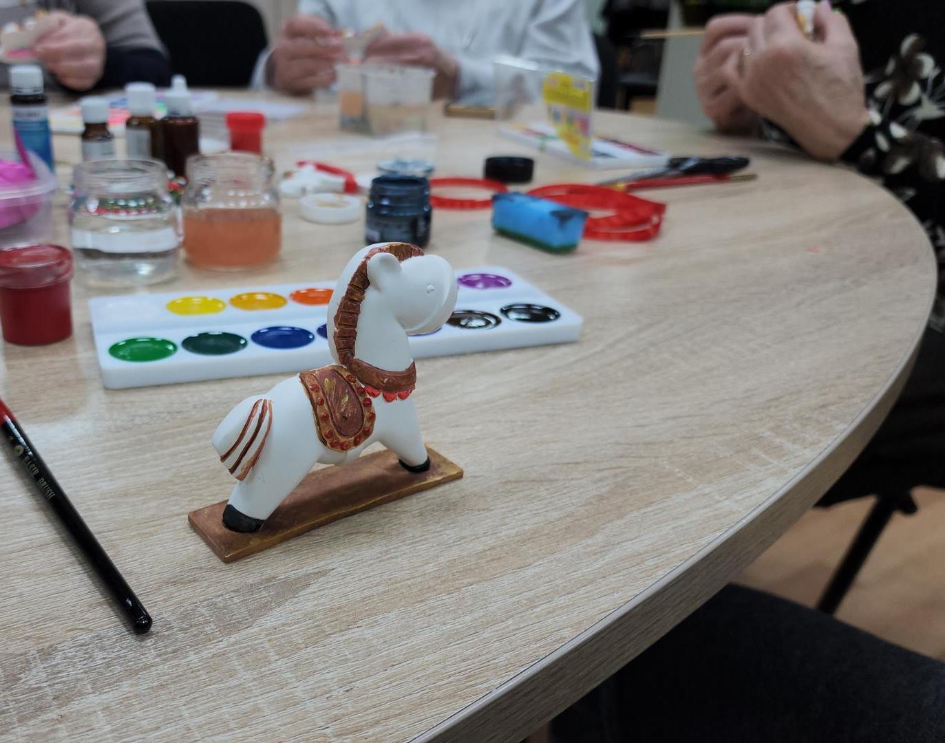 На недавнем мастер-классе под руководством Татьяны Симоновой, руководителя проекта в Кашире, мастерицы создали главный символ наступающего года — изящных лошадок. В качестве материала был выбран гипс. После того как он застыл в силиконовых формах, началась самая интересная часть — художественная роспись. С помощью гуаши, акварели и акрила белые заготовки превратились в ярких сказочных коней: появились уздечки, разноцветные гривы, нарядные седла и пышные хвосты. Каждая игрушка обрела свой характер.
