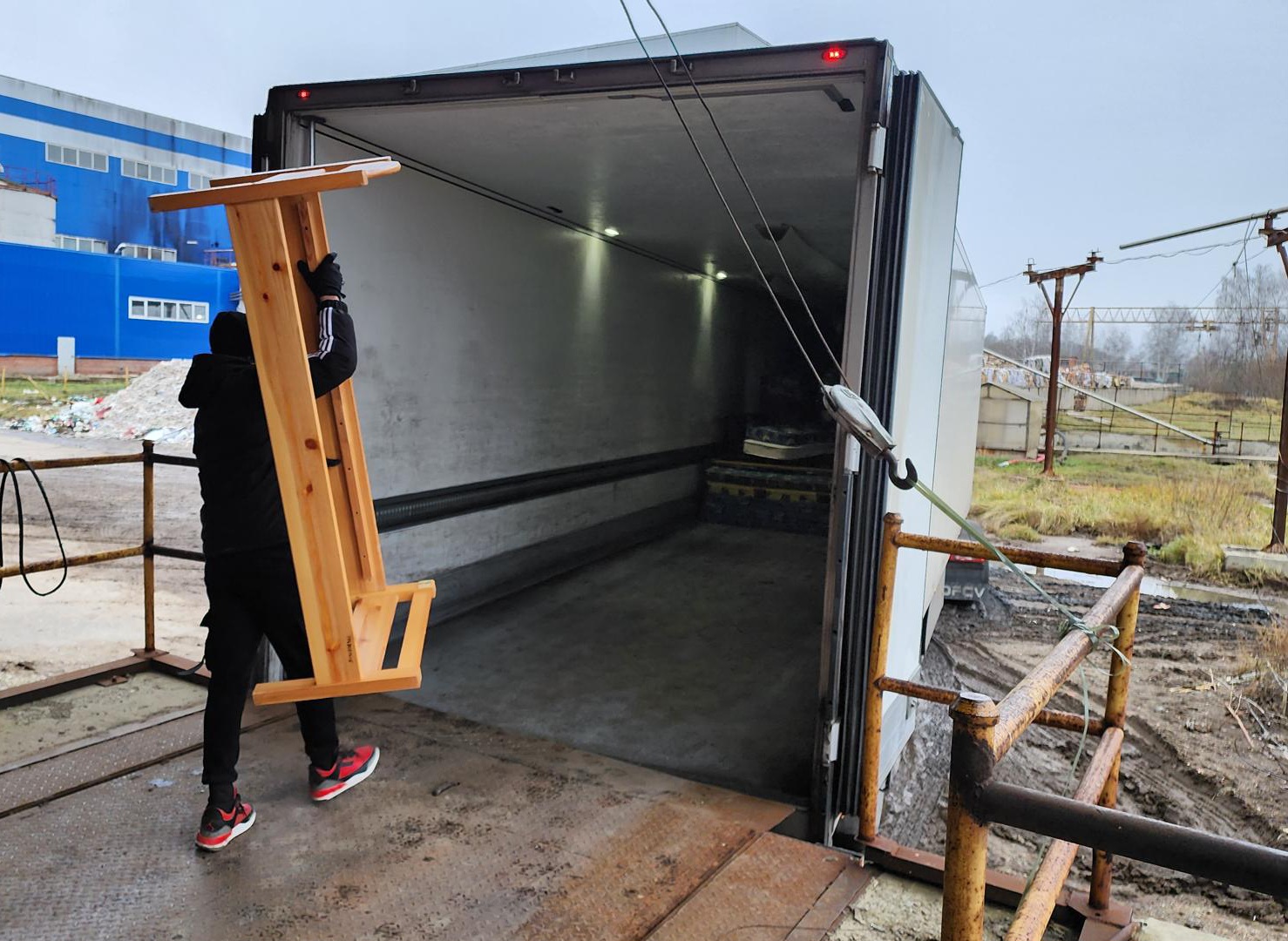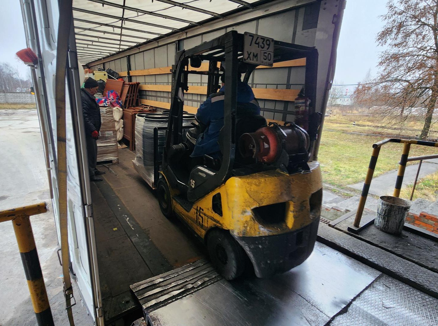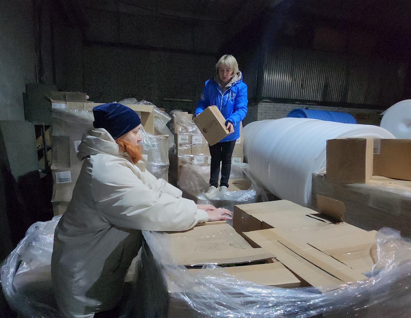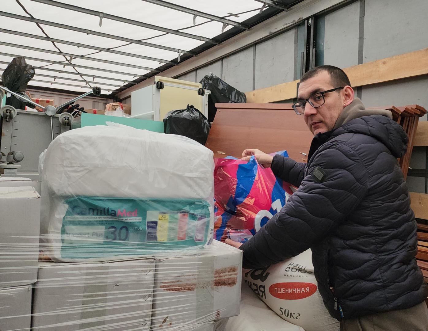 На погрузку четырех большегрузов у добровольцев ушло шесть часов — большую часть товаров, среди которых продукты, медикаменты и средства гигиены, пришлось заносить в фуры вручную.