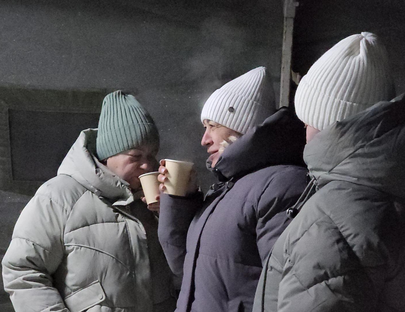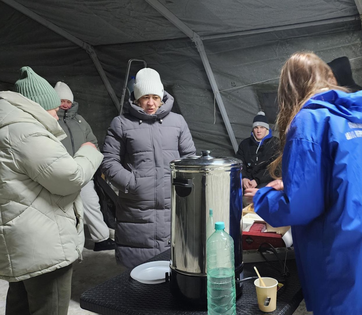 Для обеспечения комфорта и безопасности участников администрация подготовила специальные пункты обогрева. Они были оснащены раздельными раздевалками для мужчин и женщин с вешалками и стульями, а также мощными газовыми обогревателями. В просторных армейских палатках можно было не только переодеться, но и согреться горячим чаем с печеньем и баранками, которые раздавали местные волонтеры.