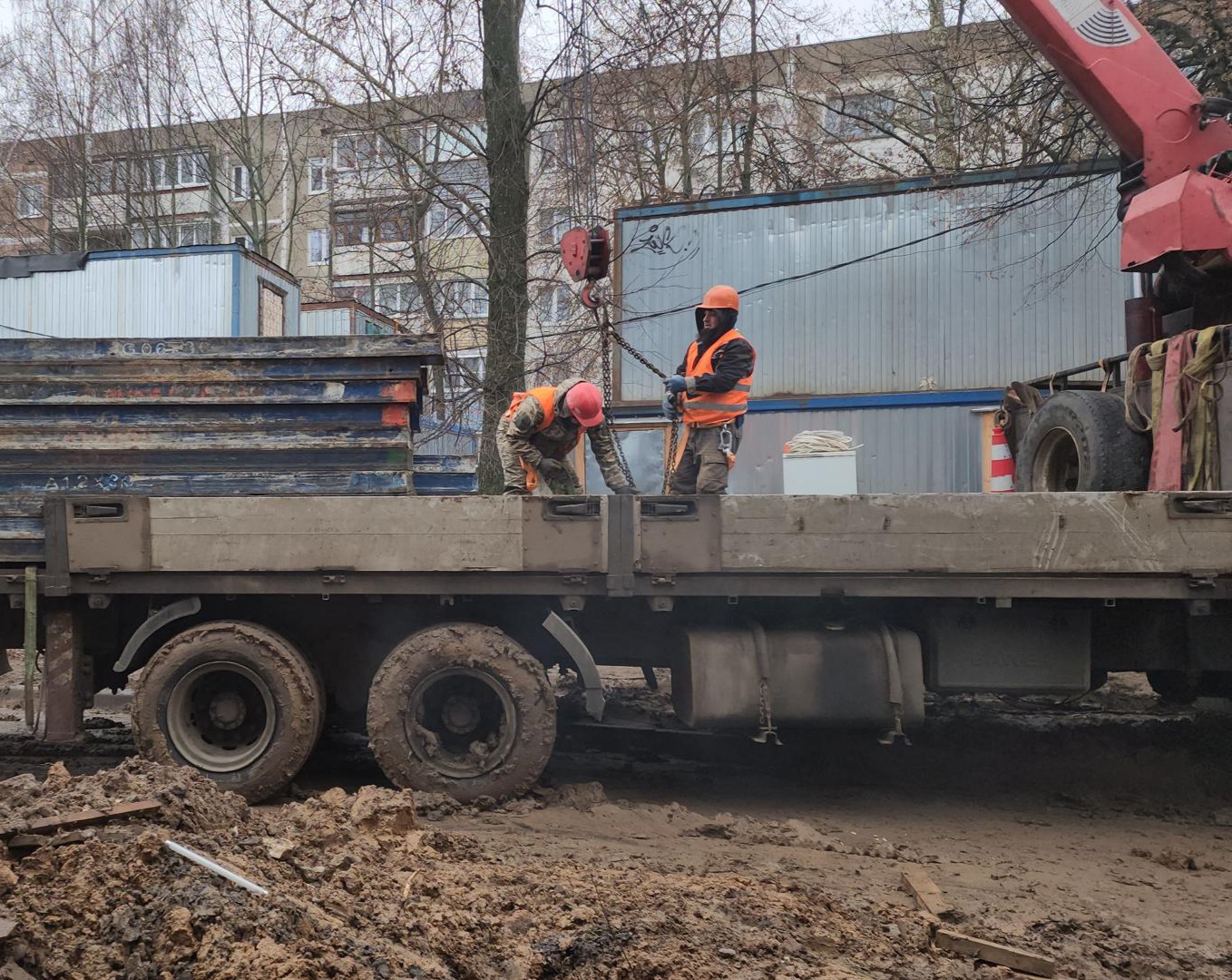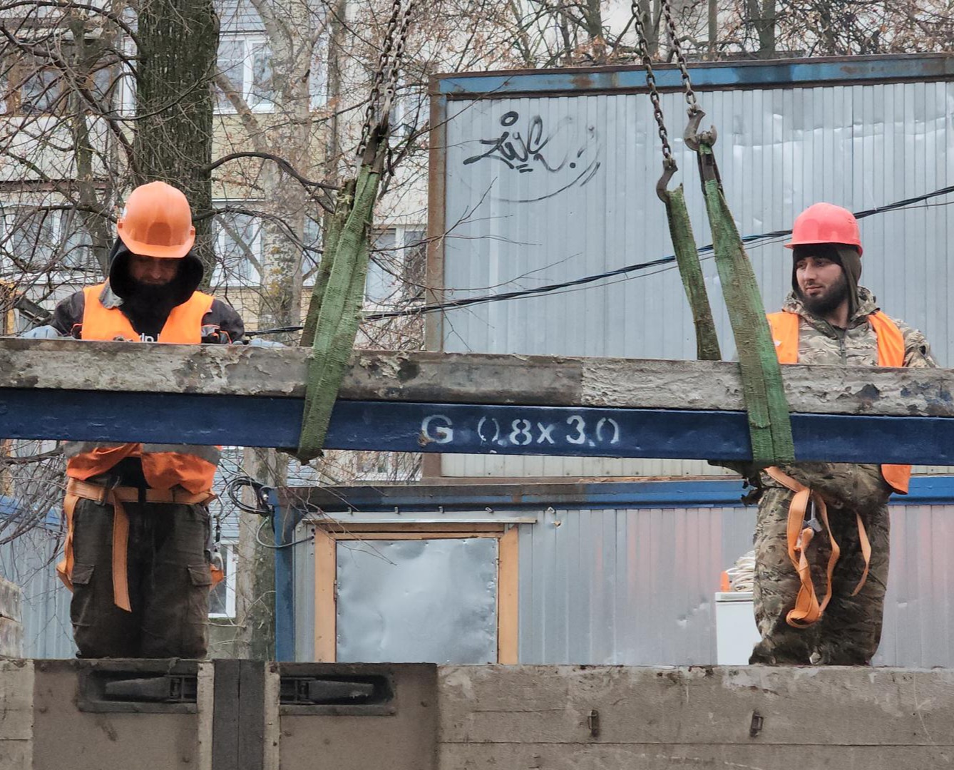 На объекте работают 20 монолитчиков и инженерно-технический персонал, задействованы два самосвала для вывоза мусора, бортовой грузовик с манипулятором и два трактора-погрузчика.