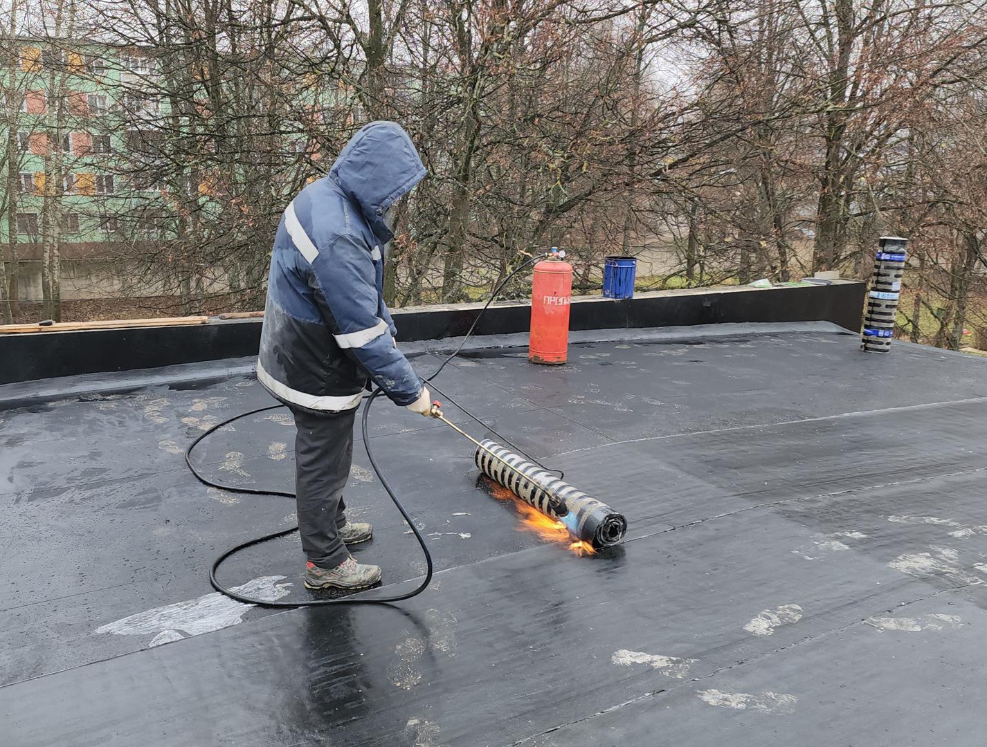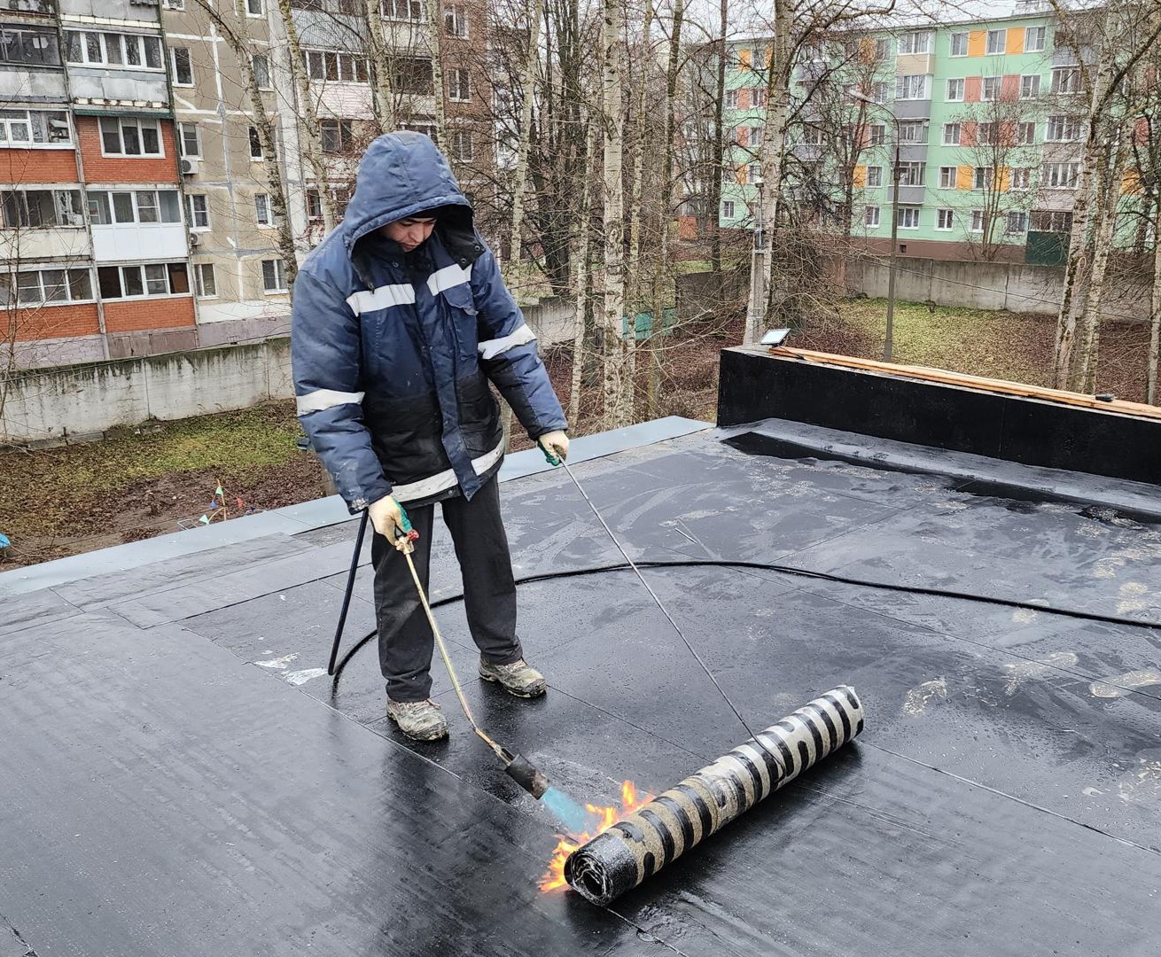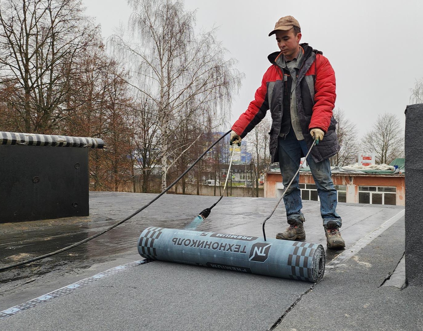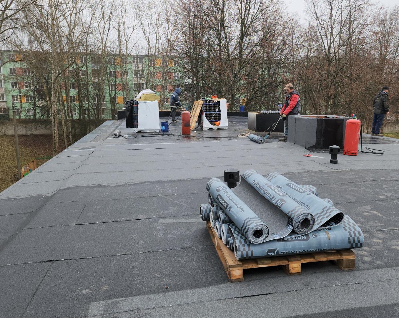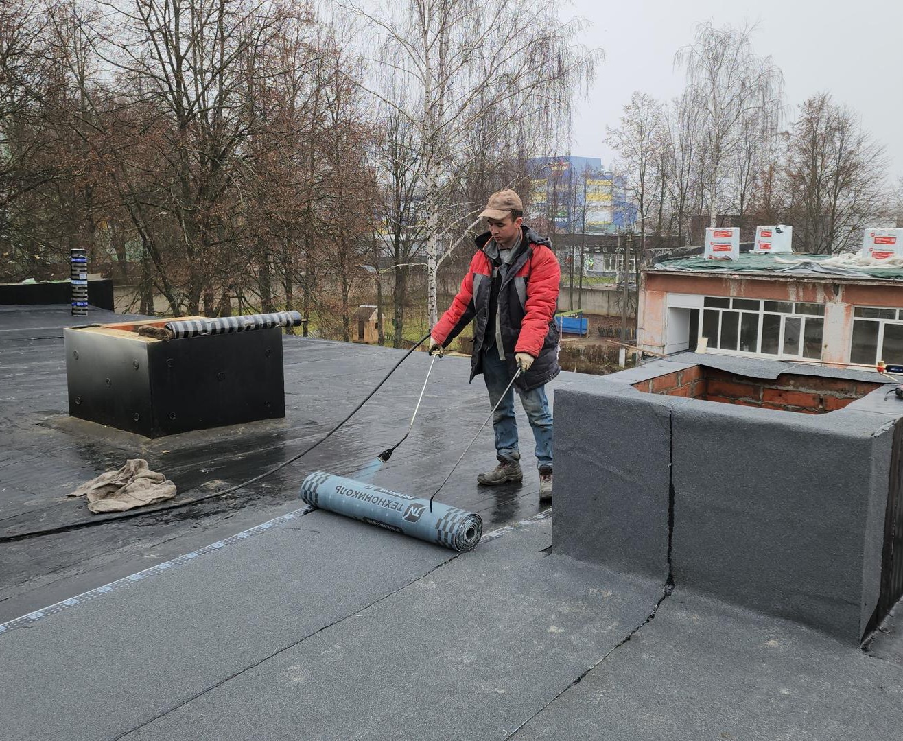 Параллельно идет усиление конструкций — места с выявленными разрушениями приводят в нормативное состояние. Подходит к завершению устройство новой кровли, которая выполнена уже на 85%, и внутрь здания больше не проникает влага. Кровельщики сейчас приваривают последние слои гидроизоляции.