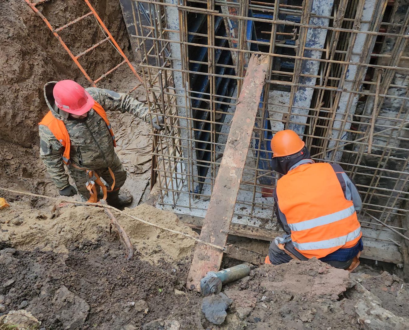 В самом здании начались монолитные работы по подготовке новых входных групп. После полного закрытия теплового контура строители приступят к монтажу внутренних инженерных систем: электроснабжения, отопления, водопровода и слаботочных сетей, а также к отделке и штукатурке стен.