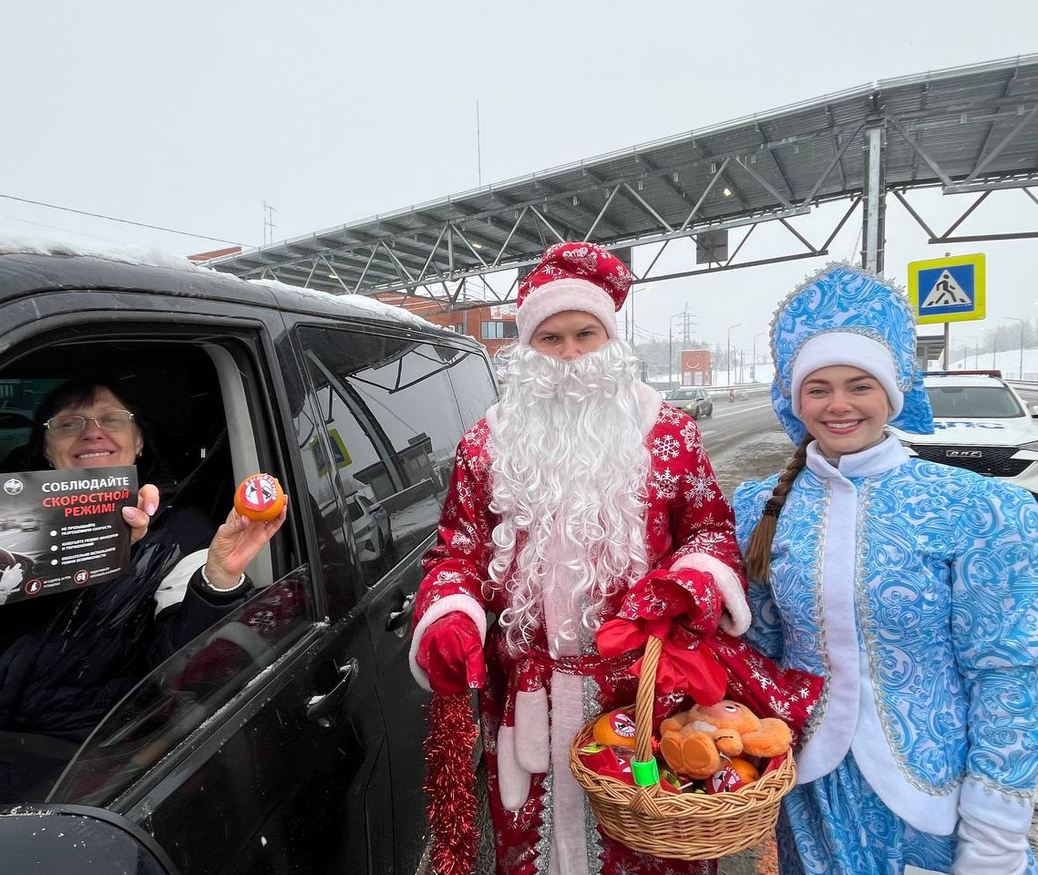 Накануне Нового года сотрудники 16 батальона ДПС 2 полка ДПС (южный) Госавтоинспекции ГУ МВД России по Московской области провели традиционную праздничную акцию на 111-м километре автодороги «Дон». Вместе с инспекторами на дежурство вышли Дед Мороз и Снегурочка, чтобы напомнить водителям о важности безопасности в праздничные дни.