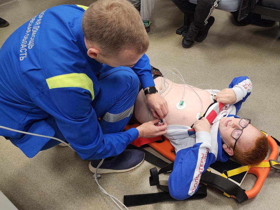 Знакомство с работой парамедиков началось на автостоянке. Фельдшер Артем Каменев показал ребятам, как устроена машина скорой помощи, и рассказал, каким оборудованием она оснащена. Как оказалось, в современных машинах есть все необходимое, чтобы оказать первую помощь жителям и быстро доставить их в медицинские учреждения. Это и специальные носилки с системой «паук», чтобы зафиксировать пациента с подозрением на перелом позвоночника, аппараты искусственного дыхания и дефибрилляторы.