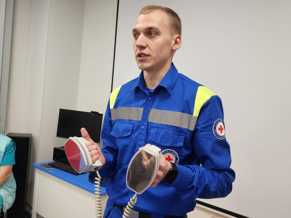 О буднях неотложки рассказал и Артем Каменев. Он показал, что входит в состав медицинского чемодана и чем они различаются. А также продемонстрировал, как работает портативный электрокардиограф, аппарат для непрямого массажа сердца и другое медицинское оборудование.