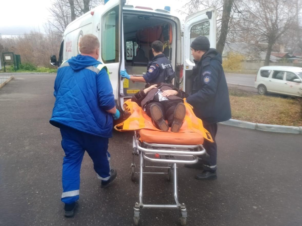 Работники поисково-спасательного поста 220-й пожарно-спасательной части ГКУ МО «Мособлпожспас» в Кашире оказали помощь медикам в транспортировке пожилой женщины из поликлиники в автомобиль скорой помощи для последующей госпитализации.