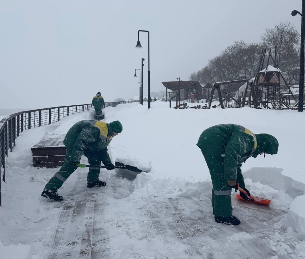 К работе подключилась и лично директор дирекции парков Олеся Кожадей, встав за руль снегоуборщика. Она подчеркнула, что все сотрудники работают как одна команда, консолидируя усилия для быстрого наведения порядка.