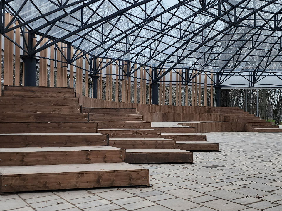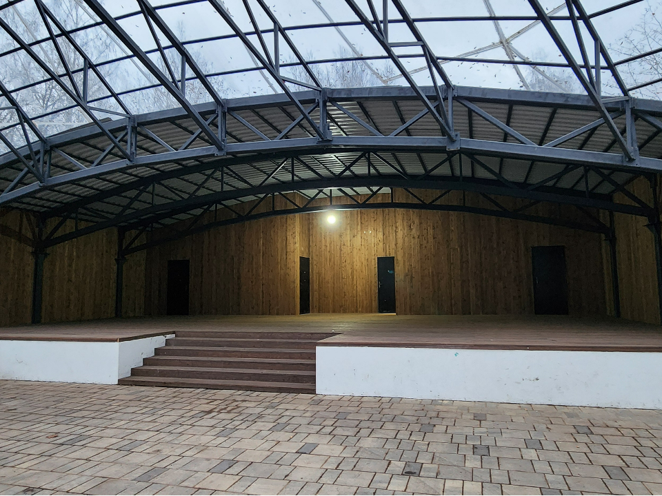 Работы по благоустройству коснулись еще одного важного объекта в парке — главной сцены. Эта популярная площадка, расположенная недалеко от колеса обозрения, является ключевым местом проведения досуговых мероприятий для жителей и гостей округа. Сцена заметно преобразилась: специалисты сконструировали амфитеатр, полностью заменили покрытие и обновили систему освещения.