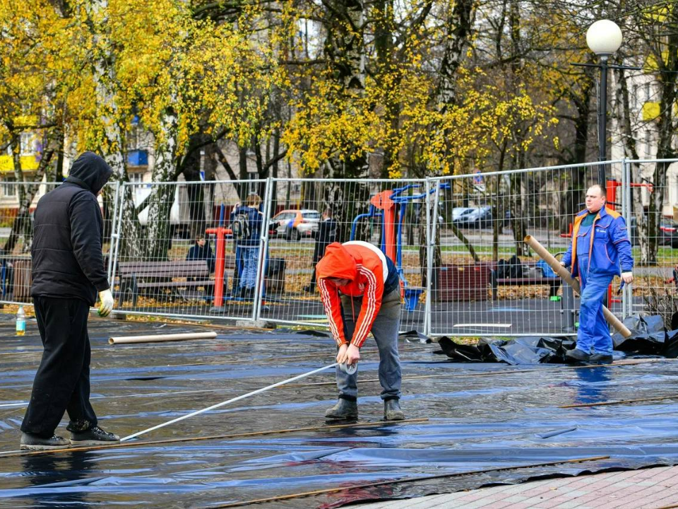 В Химках начались активные работы по подготовке к зимнему сезону: стартовало обустройство популярного Театрального катка, расположенного в сквере «Юбилейный».