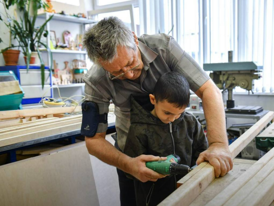 Перед посадкой деревьев в школе для химчан провели мастер-класс по изготовлению скамеек. Дети и взрослые под руководством опытных наставников сверлили, пилили и шлифовали доски.