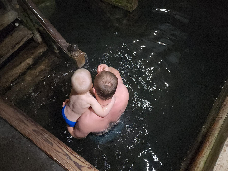 «Мы вообще закаляемся. Ездим в Кировскую область на каникулы. Там у нас баня, обтирание снегом. Купание в Крещение — это традиция. Уже третий год мы ездим с детьми», — рассказала Екатерина.