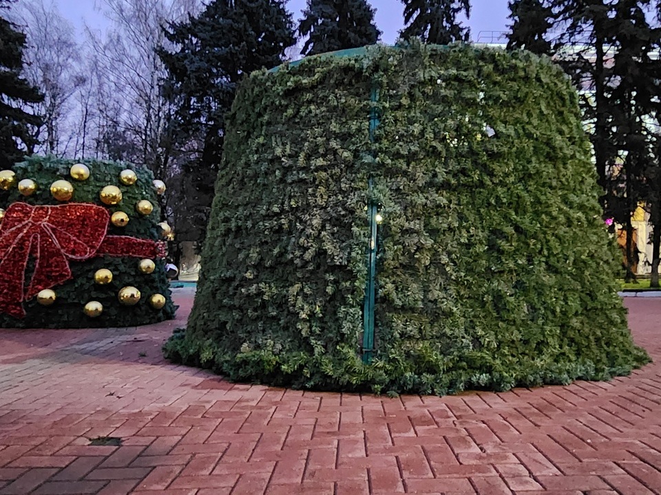 В Химках полных ходом идет подготовка к Новому году. Город украшают светящимися инсталляциями, в разных частях устанавливают праздничные деревья. Елку ставят на Московской улице возле здания администрации городского округа.