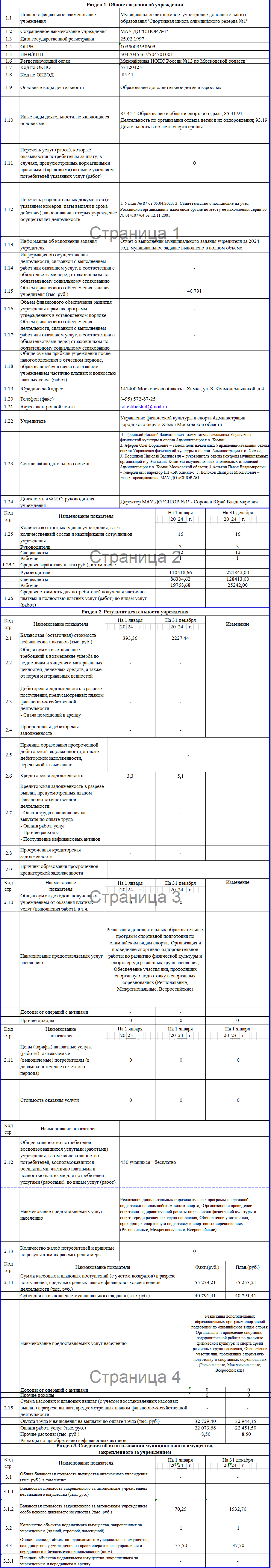 Отчет муниципального автономного учреждения дополнительного образования «Спортивная школа олимпийского резерва №1» за 2024 отчетный год