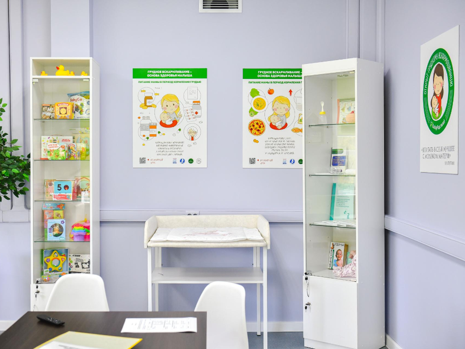 В новом центре предусмотрено все необходимое: удобное специализированное кресло и даже игровой уголок для детей постарше, чтобы мамы могли спокойно заниматься грудным вскармливанием. Консультации проводятся как очно, так и в режиме телемедицины.