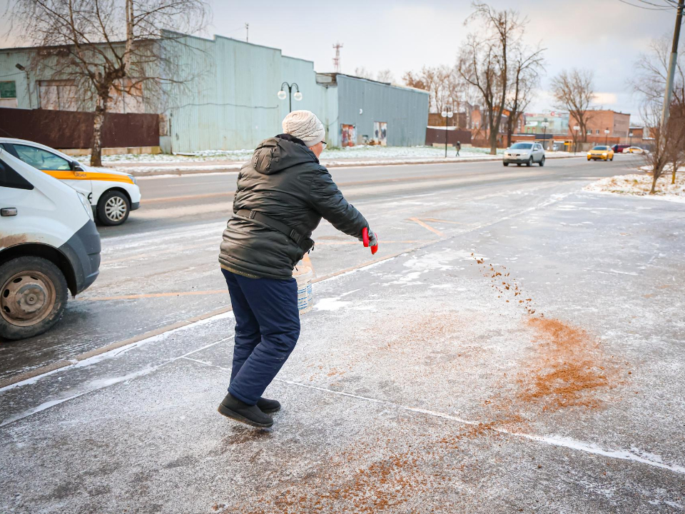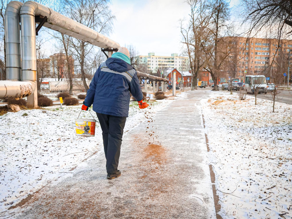 Ночное похолодание в Клину привело к гололеду. Десант коммунальщиков «Чистого города» вышел, несмотря на субботний день, на работу уже с 6:00. Все для того, чтобы успеть посыпать улицы города противогололедной смесью и клинчане могли бы без проблем передвигаться по ним — кто на работу, кто по другим делам.