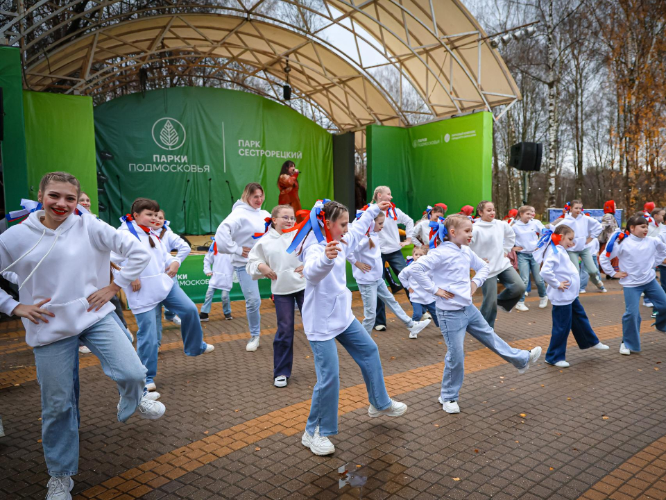 В клинском парке культуры и отдыха «Сестрорецкий», напротив амфитеатра, в День народного единства прошел масштабный флешмоб. Его участниками стали более полутысячи неравнодушных и любящих свою страну клинчан и гостей округа. Школьников, студентов, танцоров, активистов молодежных организаций и волонтеров Подмосковья объединил этот праздник с депутатами и представителями других профессий.