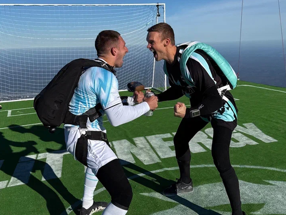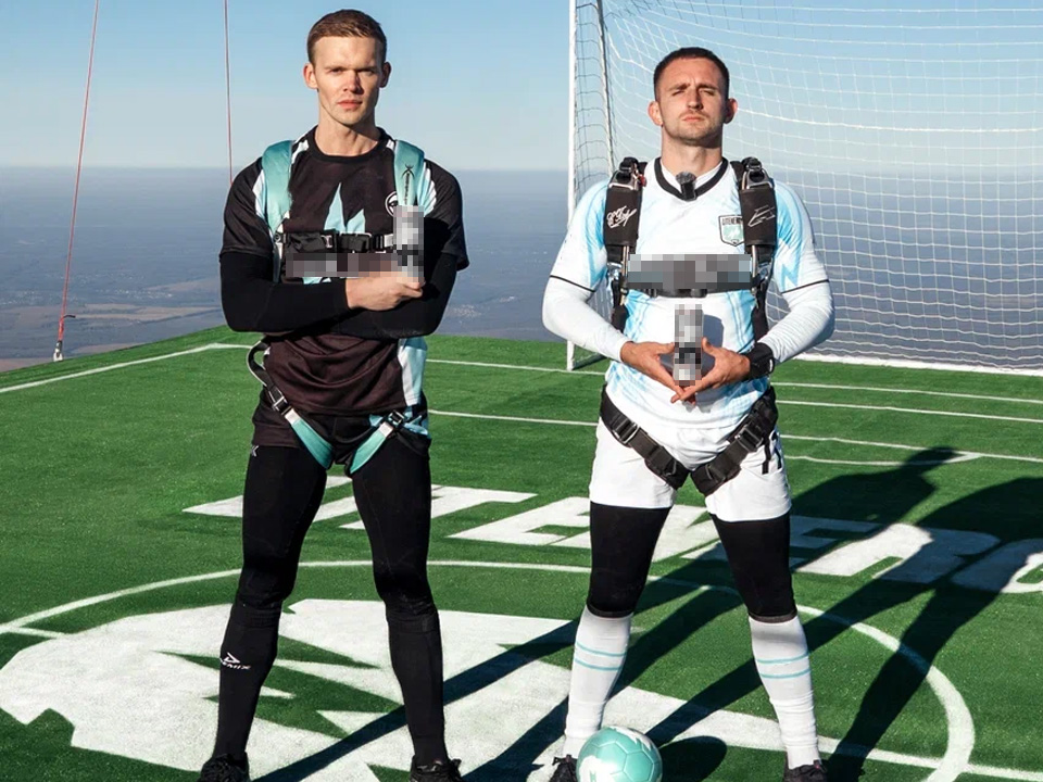 На летающем поле сыграли Сергей Бойцов и видеоблогер Михаил Литвин, а судьей стал Виктор Чалов. Полет длился полтора часа. За это время игроки использовали 20 футбольных мячей, и ни один из них не остался на платформе после матча, все улетели.