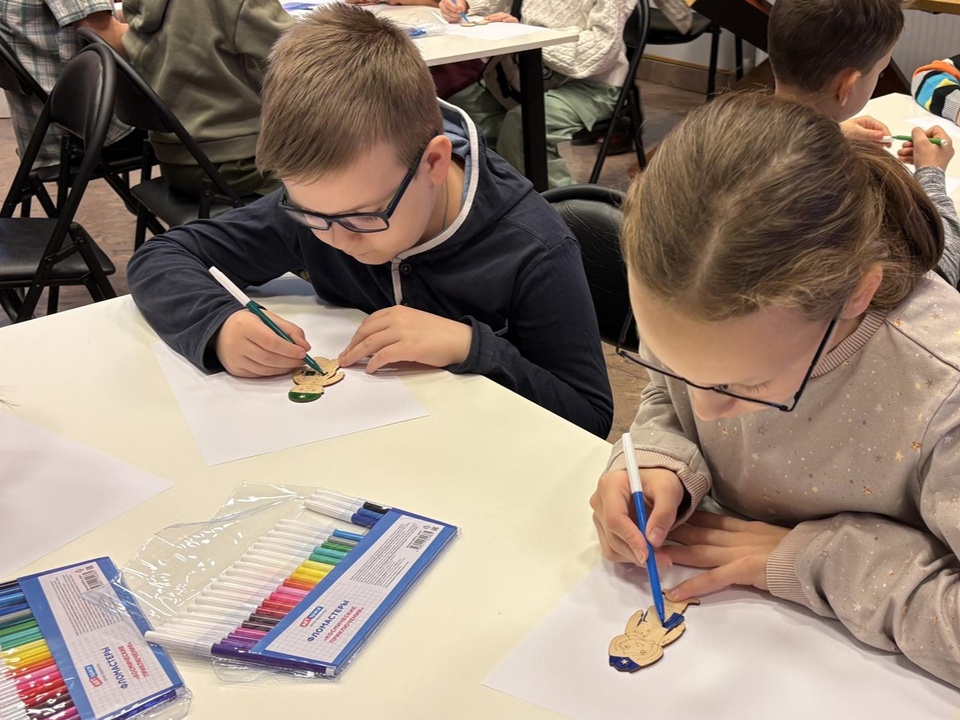 Следующим этапом стал увлекательный мастер-класс «Маленькая армия больших героев»: дети разрисовывали деревянных солдатиков, изучая особенности военной формы, знаков различия представителей разных родов войск — танкистов, моряков, летчиков, медиков. Занятие сопровождалось рассказами о храбрости и взаимоподдержке российских военнослужащих.