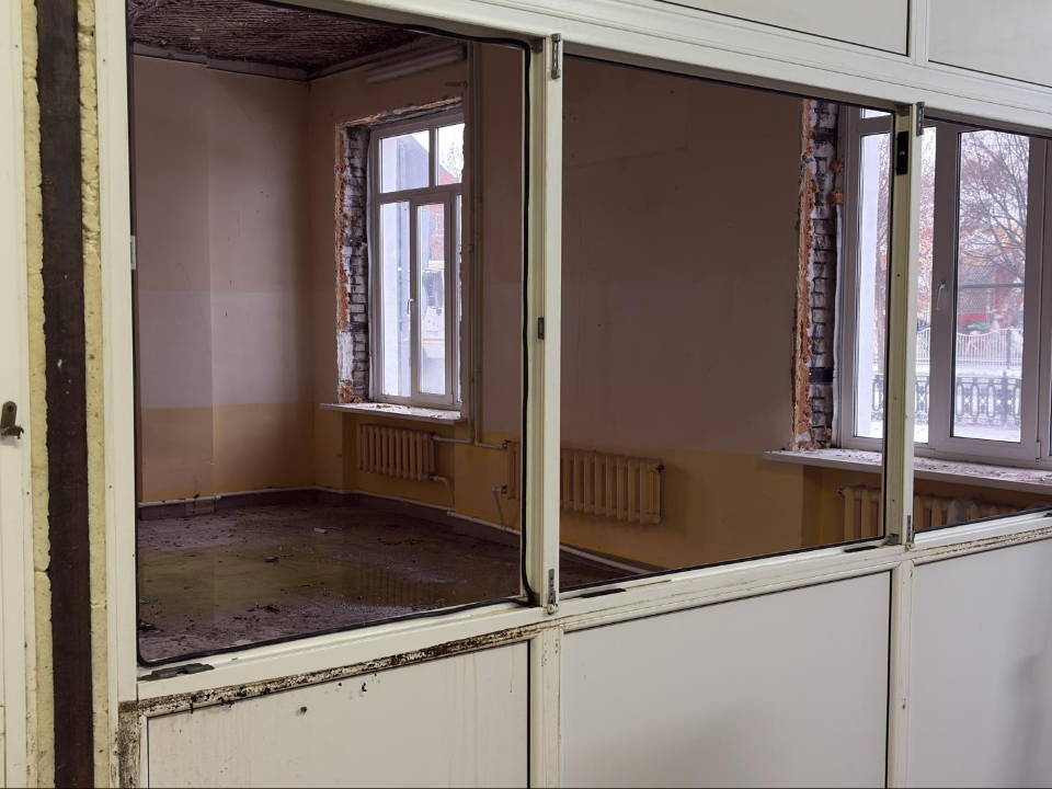 На стройплощадке заняты шесть сотрудников. Общая площадь ремонтируемого здания составляет 2168 квадратных метров. Планируется полная реконструкция всех помещений: крыши, инженерных коммуникаций, спортивного зала, столовой и каждого кабинета. Будут отреставрированы лестницы, интерьеры кардинально преобразят, оборудуют новые санузлы, систему вентиляции, электропроводку.
