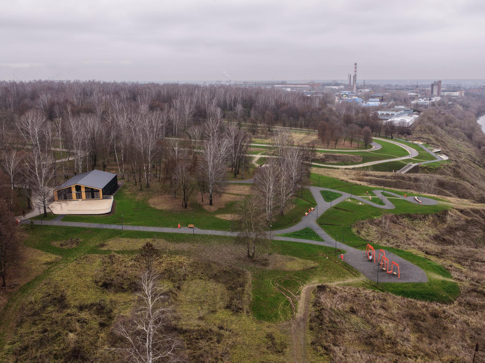 Пространство разделено на несколько функциональных зон, где можно отдохнуть всей семьей. В парке проложили пешеходные дорожки, оборудовали детские и спортивные площадки, сделали смотровую.