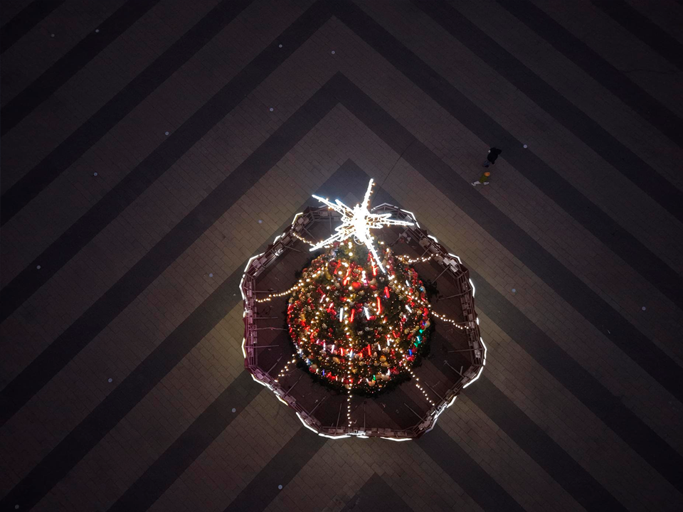 Особую атмосферу создают более 600 метров светящихся гирлянд, которые мягко подсвечивают дерево и всю площадь вокруг. Верхушку елки украшает рождественская Вифлеемская звезда с 14 лучами — символ христианской традиции, связанный с крестным путем Иисуса Христа в Иерусалиме.