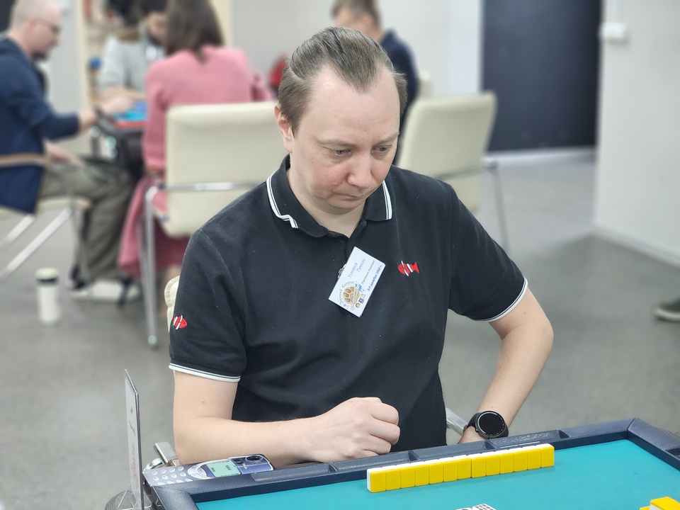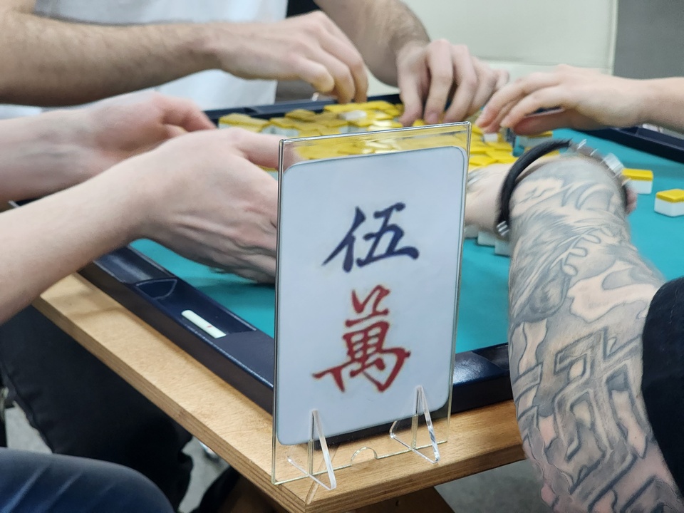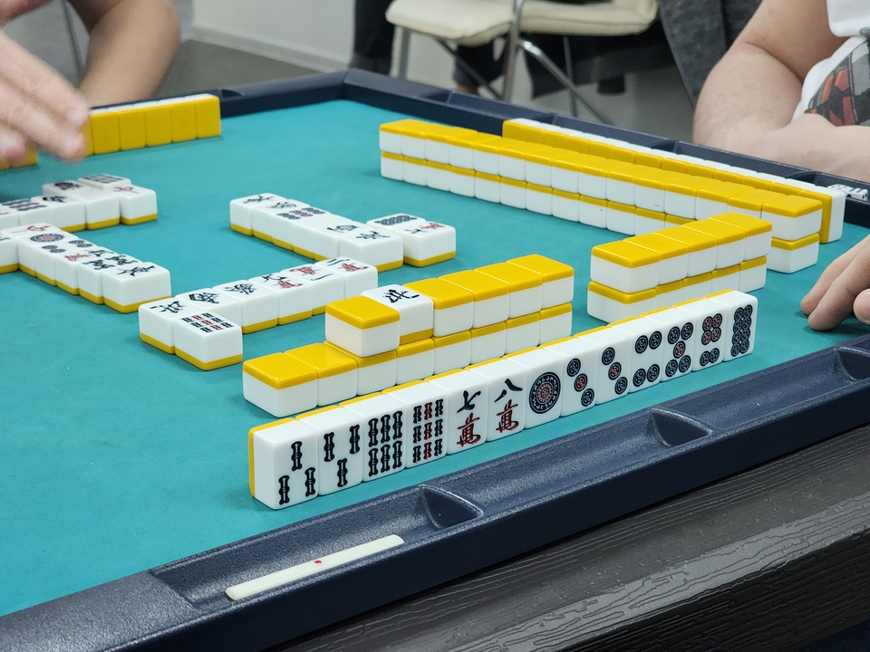 В игре риичи-маджонг участвуют четыре человека. Они должны из похожих на домино фишек собрать выигрышную комбинацию, приносящую максимальное количество очков.