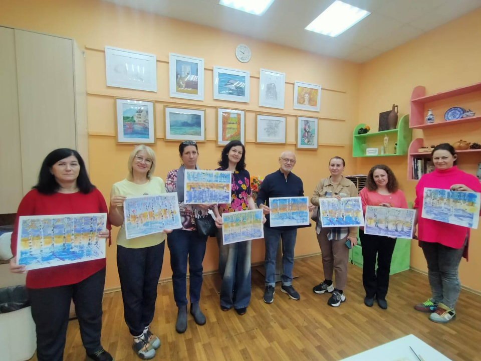 На мастер-классе «Березовая роща» в нетрадиционной технике рисования пластиковой карточкой участники создавали пейзаж, осваивая оригинальные методы рисования.