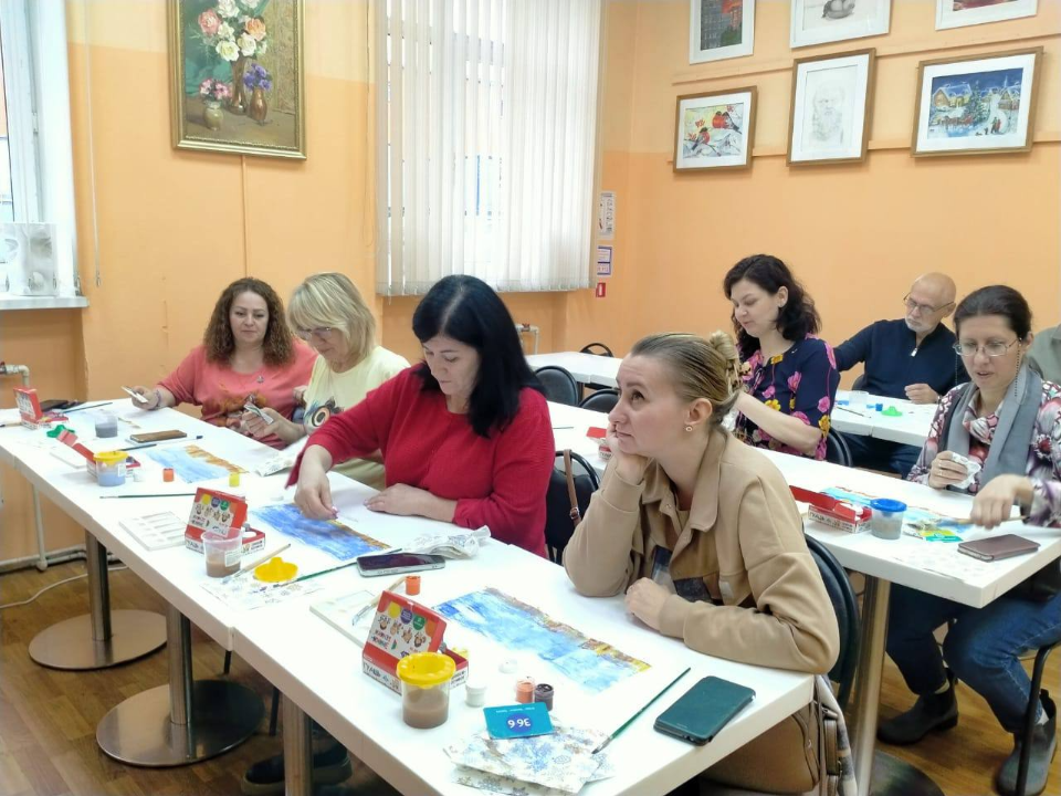 Клуб «Надежда» в Котельниках стал площадкой для профессионального диалога подмосковных художников. Руководитель Образцового коллектива «Изостудия «Радуга» Ольга Пузырева провела мастер-класс по изобразительному искусству для коллег из пяти городских округов Московской области. Об этом рассказали в Культурном комплексе «Котельники».