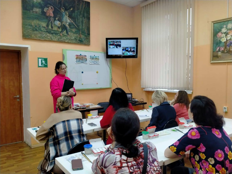 В теоретической части мероприятия Ольга Николаевна рассказала коллегам о создании и о работе коллектива, затем участники приступили к практической части занятия.