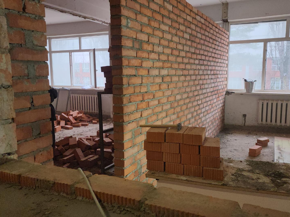 Начато строительство новых внутренних стен и перегородок, что составляет пока лишь 5% общего объема строительства. Подрядчик активно взаимодействует с руководством колледжа, согласовывая будущее устройство аудиторий и необходимое оборудование для учебы более 700 студентов.