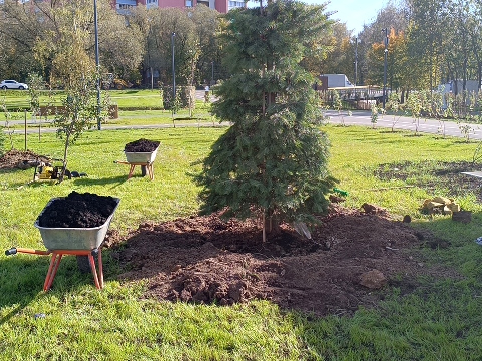 Все растения поступили в Лобню из подмосковных питомников. Посадку провели в соответствии со строгими правилами.