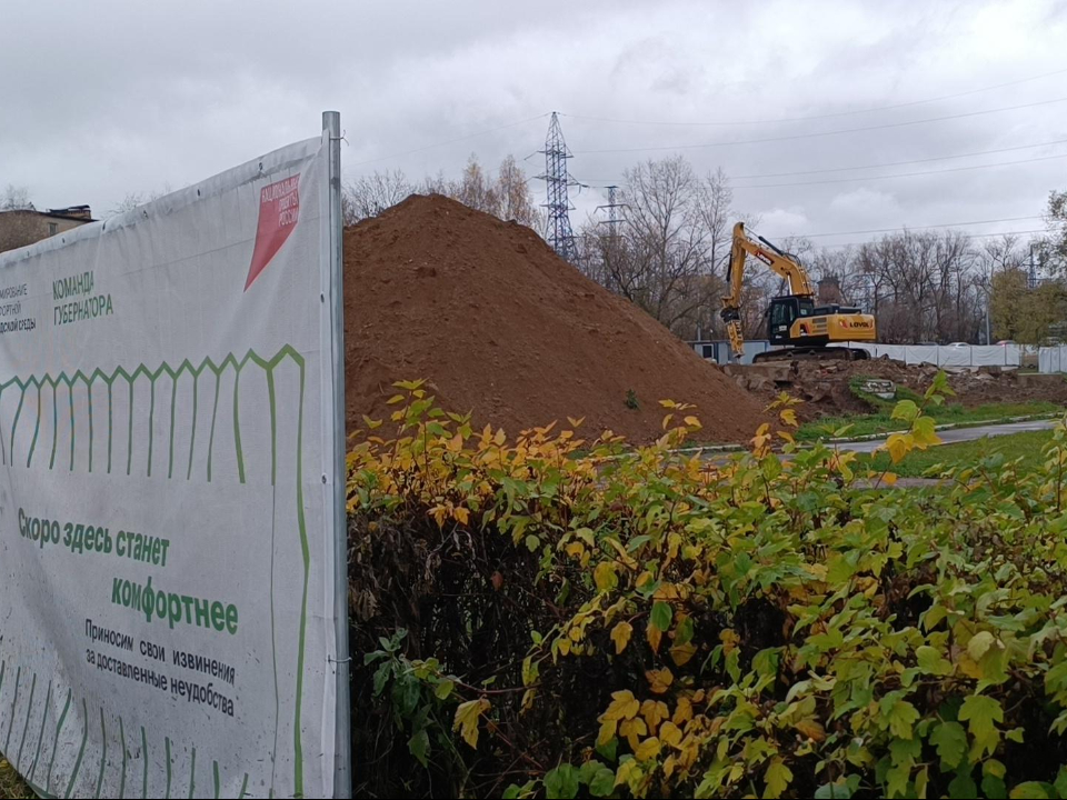 В Лобне строители убрали земляной вал у мемориала «Зенитное орудие». На объекте задействованы три человека. Основную работу выполняет большой гусеничный экскаватор, оснащенный гидромолотом. Эта машина дробит бетонные блоки, которые раньше служили внутренними стенами и опорой для барельефа.