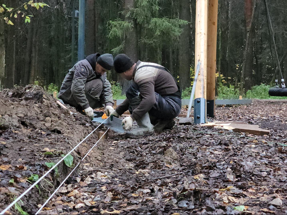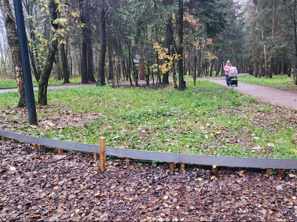 В лесопарке Лобни началась подготовка к укладке безопасного резинового покрытия на детской площадке. Сейчас рабочие устанавливают садовые бордюры. Изначально игровая зона была посыпана древесной корой, но со временем покрытие пришло в негодность из-за воздействия окружающей среды.