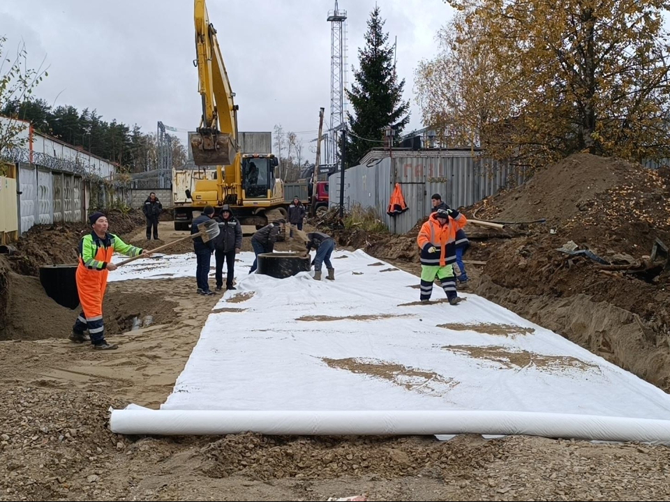Работы ведутся комплексно. Специалисты ремонтируют газовые трубы, устанавливают новые колодцы для ливневой канализации и укладывают бордюрный камень вдоль проезжей части и тротуаров. Параллельно дорожники готовят основание под будущее асфальтовое покрытие — уже завершили отсыпку щебеночного слоя, сейчас формируют песчаную подушку и укрывают ее специальным нетканым материалом.