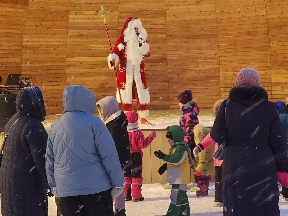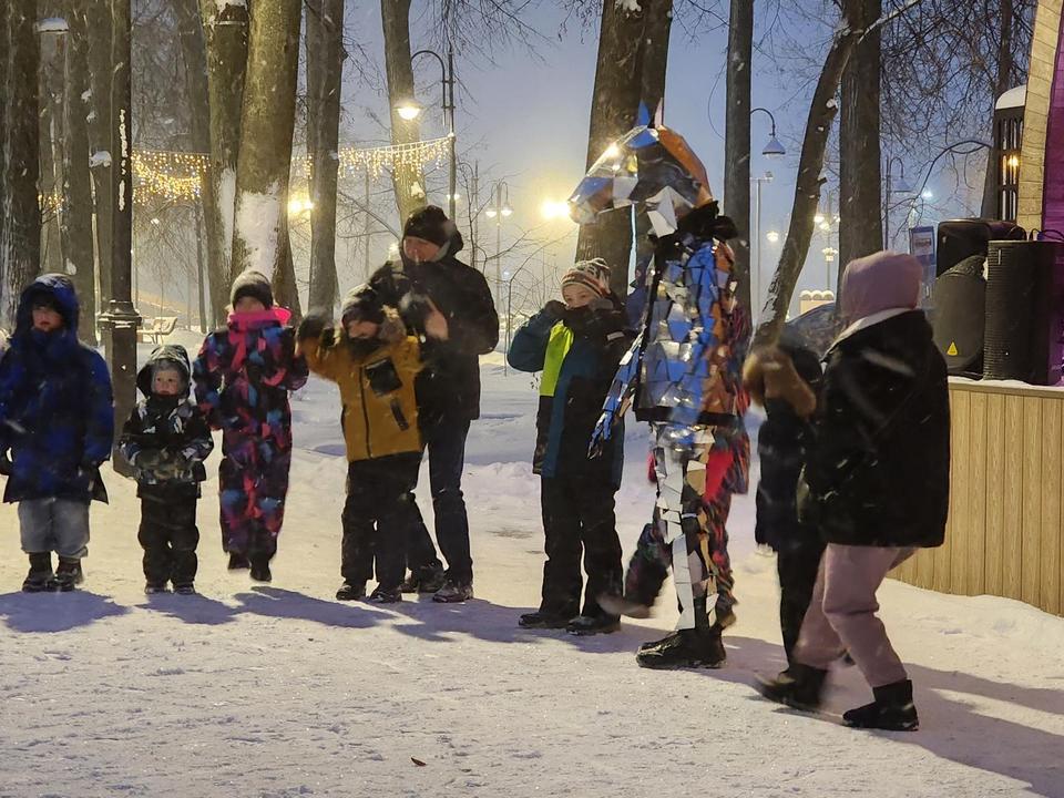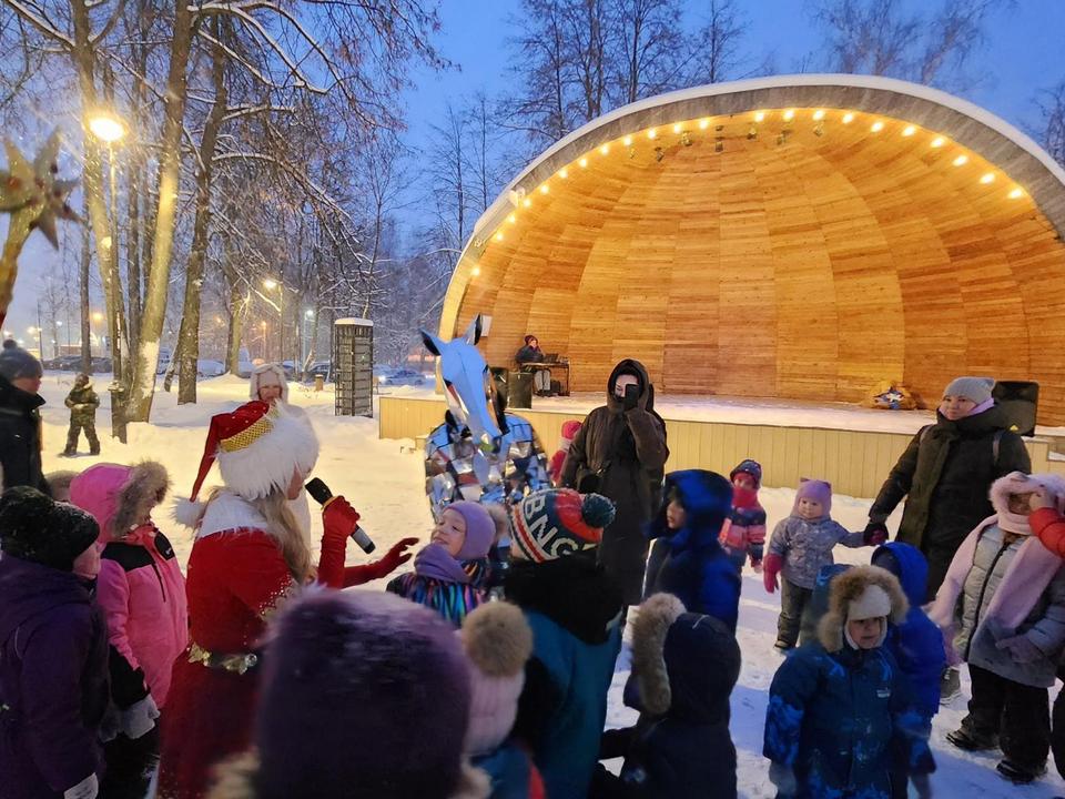 Более 200 человек стали участниками новогодних гуляний в парке Киово. Гостями праздничной программы для детей и взрослых стала пара северных оленей и символ года — блестящая ледяная лошадь. Торжество провели сказочные Дед Мороз и Снегурочка. Они организовали серию зимних игр, хороводы и творческие конкурсы. Большому празднику не помешала прохладная погода и метель. Всех согревала радость наступления нового, 2026 года.