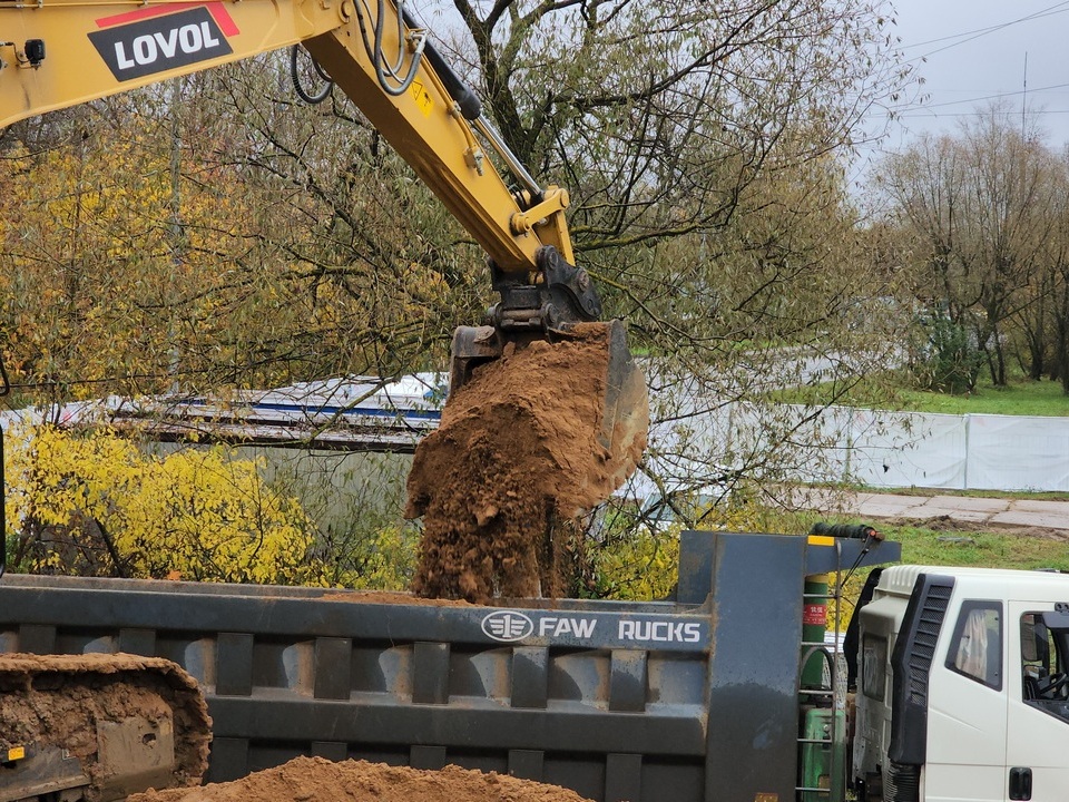 Реконструкция территории вокруг памятника «Зенитное орудие» идет полным ходом, строители уже завершили почти 20% земляных работ. В настоящее время они разбирают старую насыпь и вывозят землю. В скором времени рабочие приступят к восстановлению барельефа, постамента и территории.
