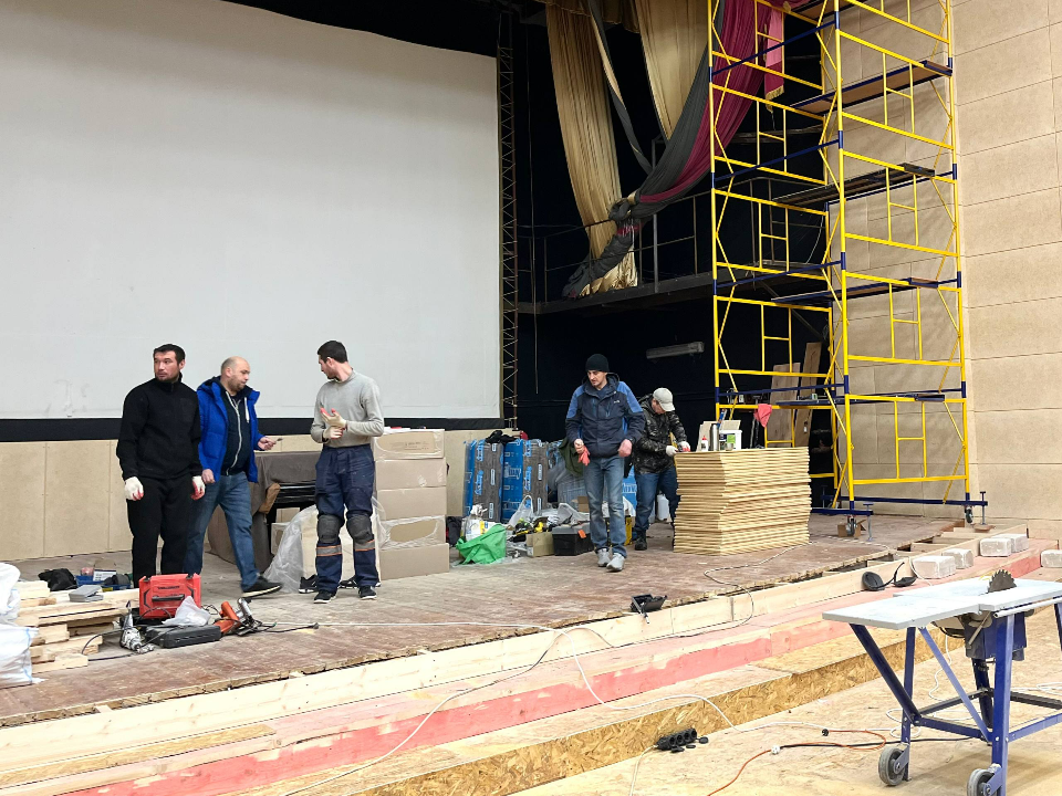 Ремонтные работы охватили все пространство зала — от пола до сценического комплекса. В ходе модернизации строители реализовали комплексный подход: произведена полная замена изношенного напольного покрытия на современное износостойкое полотно. Стены зала прошли цикл обновления с использованием материалов, улучшающих акустические свойства помещения. Старые сиденья заменены на современные эргономичные кресла, спроектированные для длительных кинопоказов и театральных постановок. Сердце зала — сцена — получила новую конструкцию.