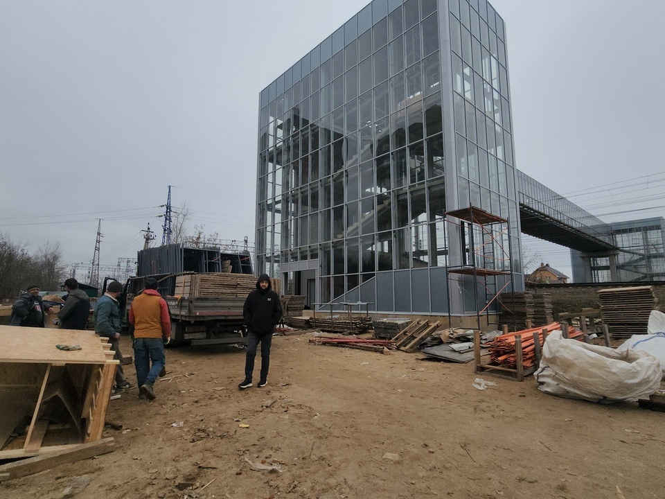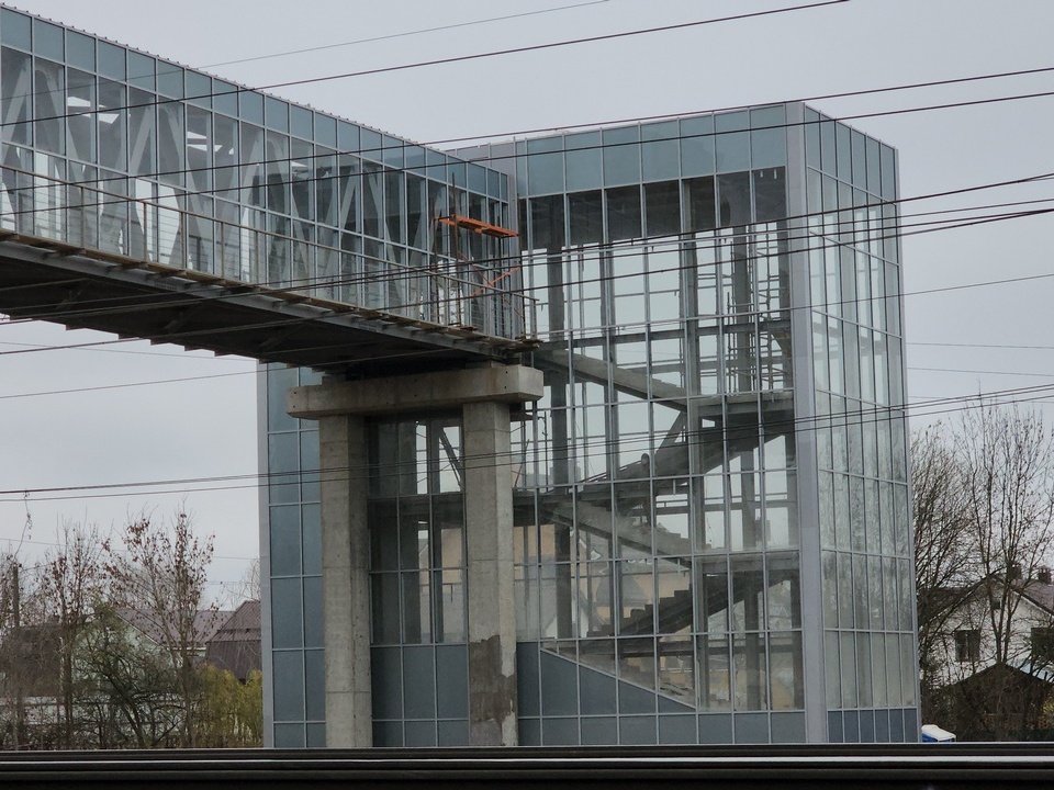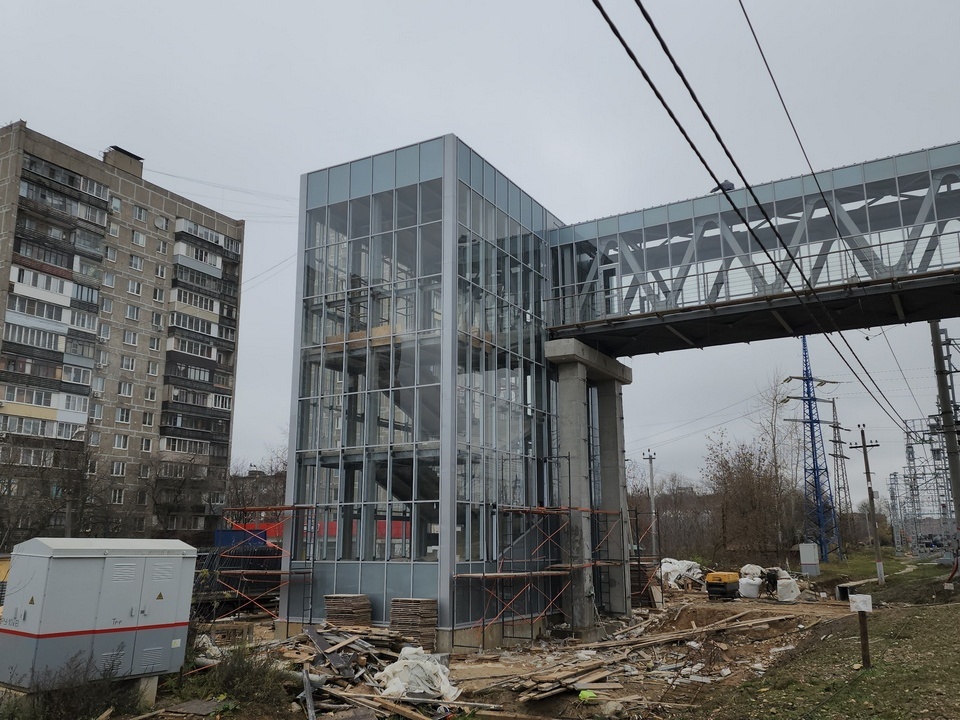 На Кольцевой улице завершается строительство надземного перехода для жителей. Рабочие уже полностью остеклили конструкцию.
