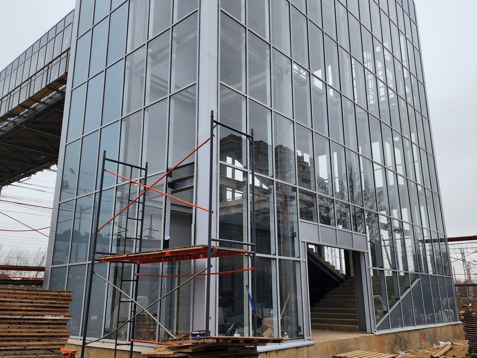 «Бригада выполнила остекление обоих павильонов и пролетного строения. Он уточнил, что готовность составляет 99%, и им осталось доставить всего пару стекол. Для остекления перехода использовали многослойные каленые стекла Triplex толщиной 3,6 мм с внутренней пленкой. Они отличаются высокой прочностью и антивандальными свойствами, что гарантирует долговечность и безопасность конструкции», — отметил производитель работ по фасаду Шахраддин.