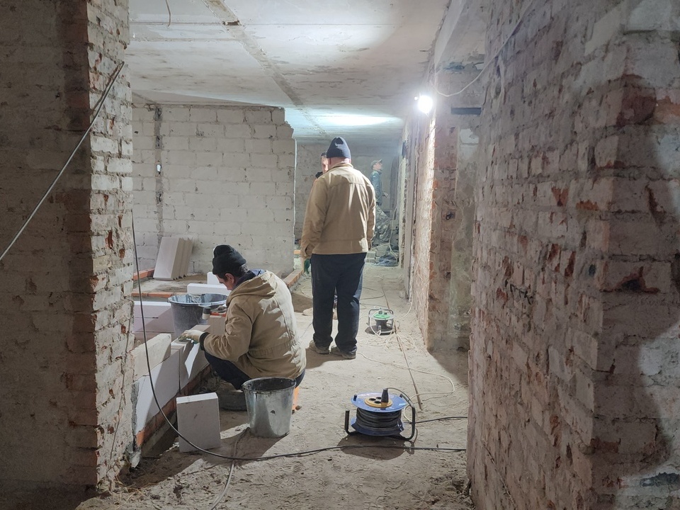 Рабочие уже закончили демонтаж, сегодня они уже строят шахту для лифта.