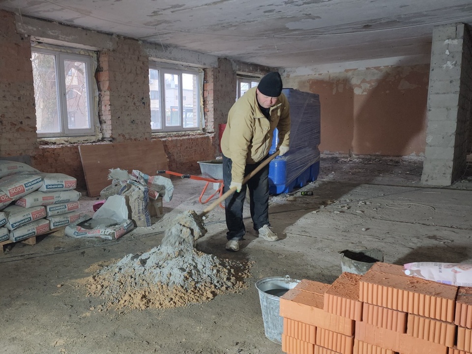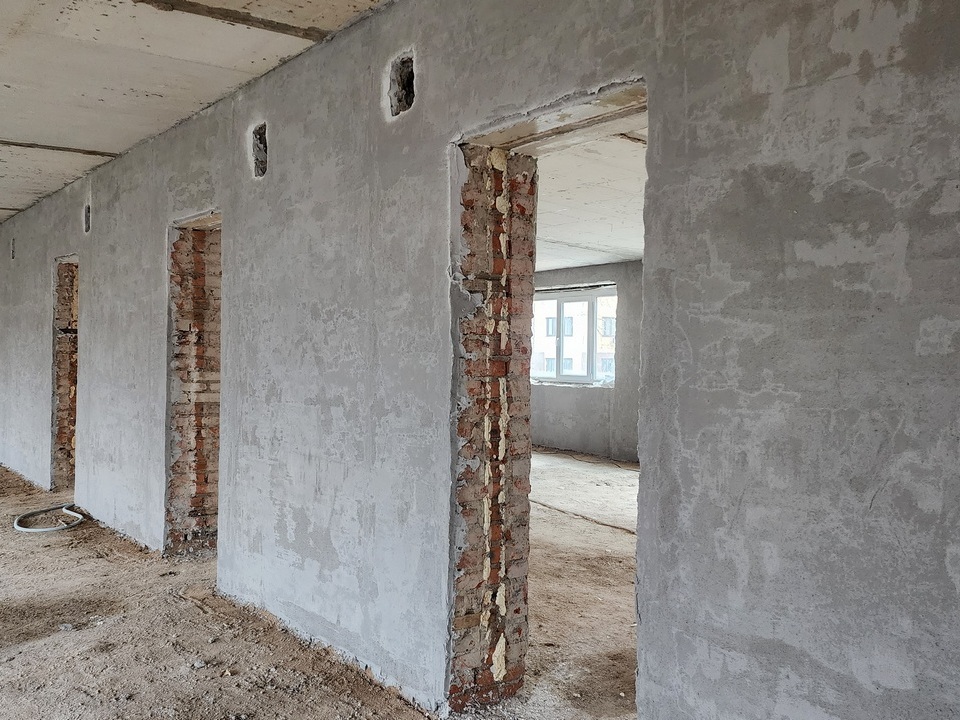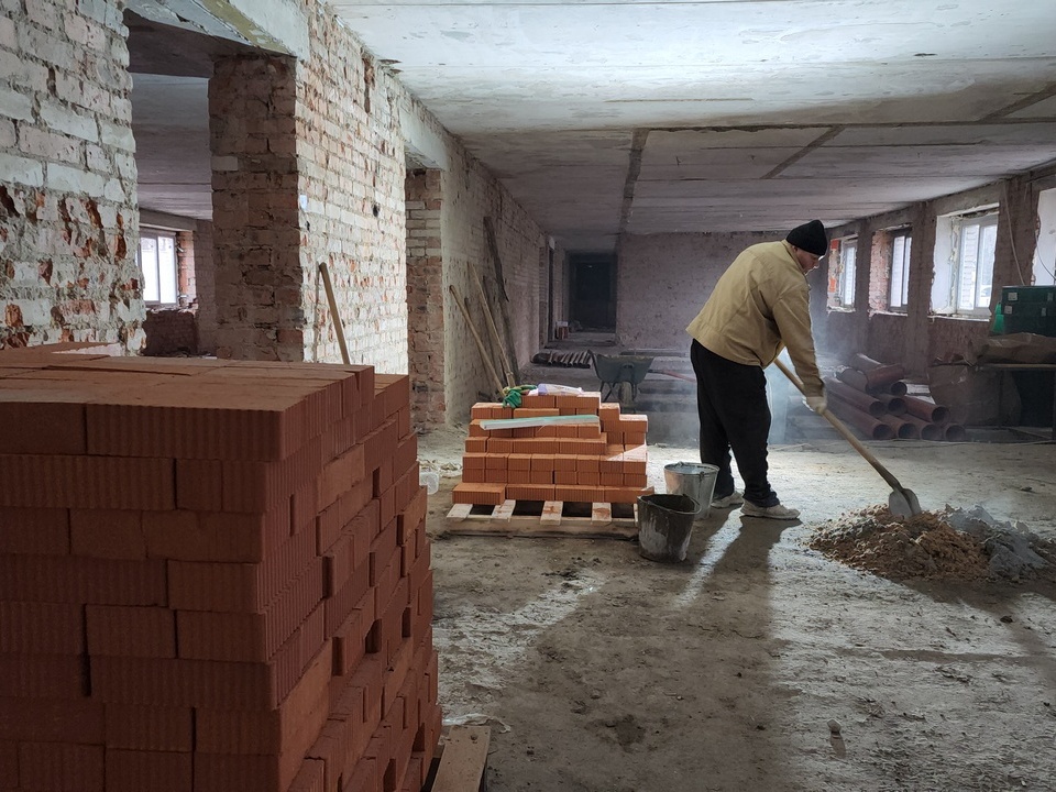 Почти готов уже четвертый этаж, до конца недели завершатся работы на третьем. На первом этаже специалисты возводят новые перегородки,