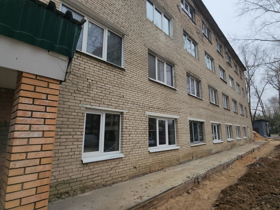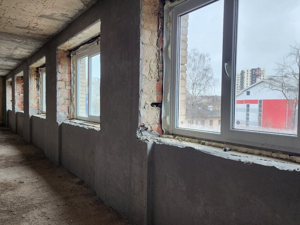В здании уже заменили значительную часть окон — около 60%. Старые стеклопакеты убрали.
