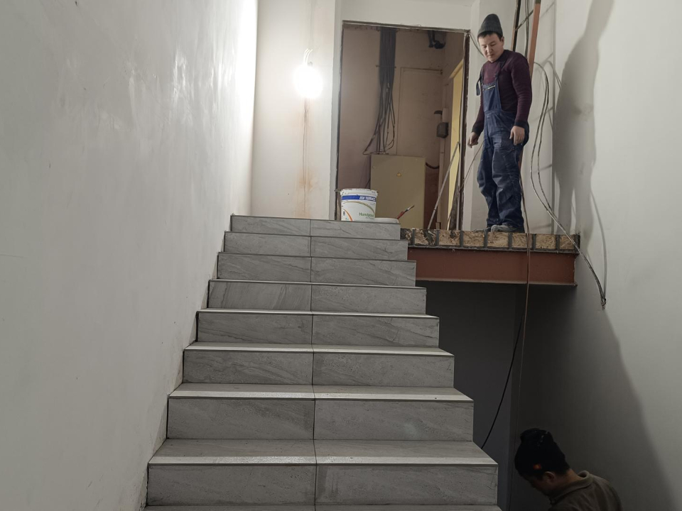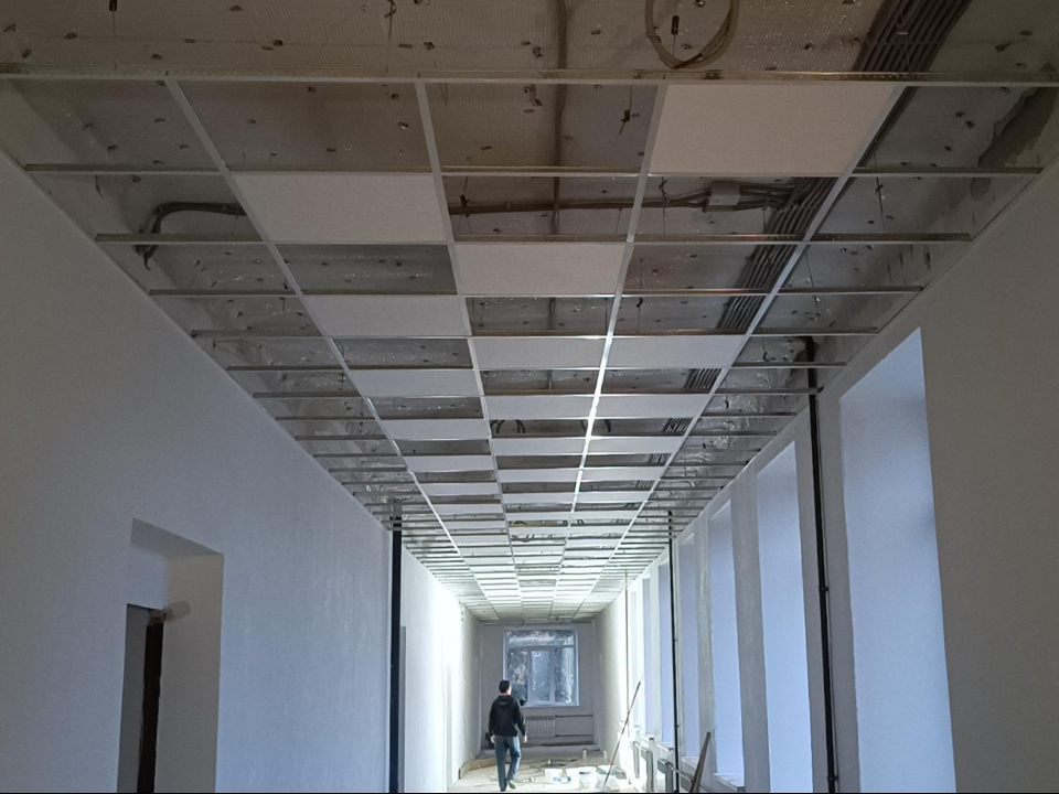 За время ремонта в здании уже успели заменить сантехнику и подключить водоснабжение. Также обновили инженерные сети, батареи отопления и входную дверь.