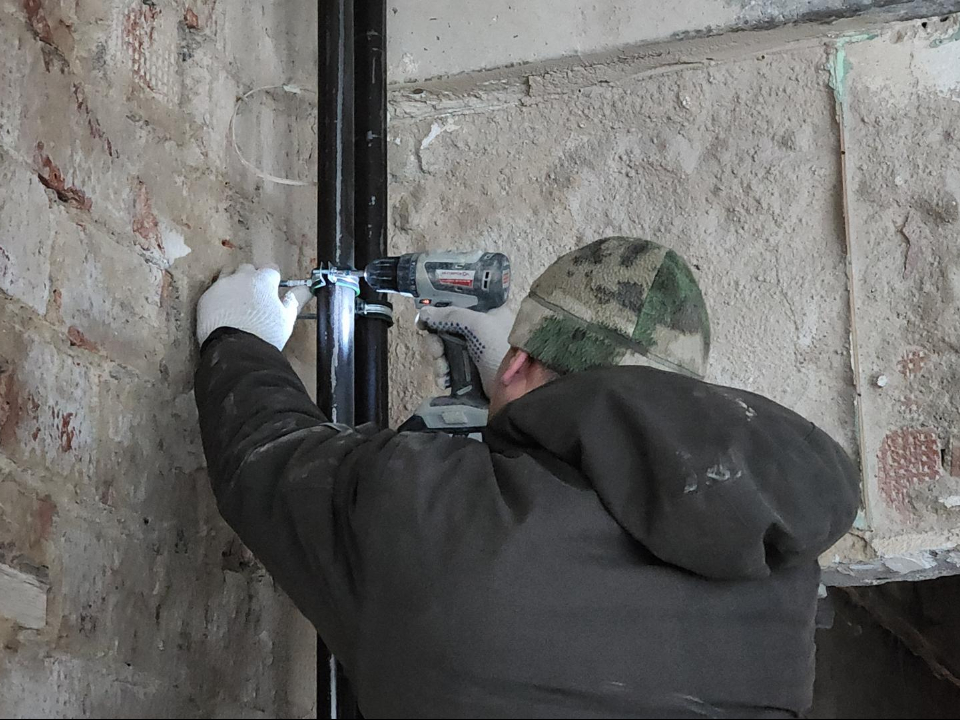 На площадке ежедневно трудятся более 30 специалистов. Текущий темп работ позволяет подрядчику не только соблюдать график, но и опережать его по некоторым этапам.