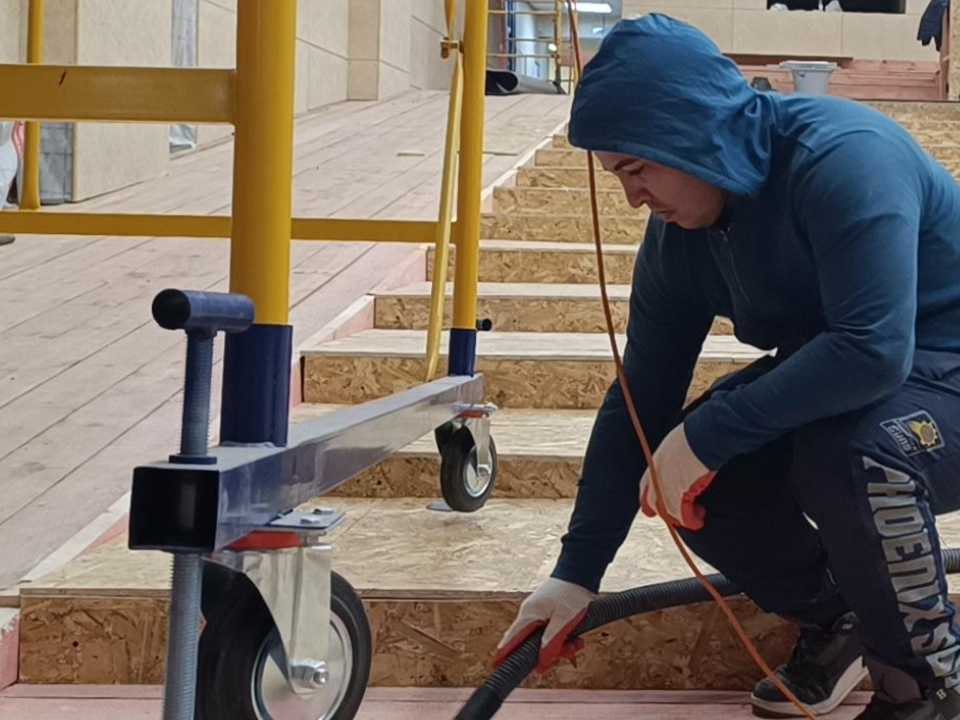 «Линолеум должен отлежаться в течение суток. Завтра мы приступим к его фиксации. Затем установим декоративные уголки вдоль ступеней и смонтируем подсветку», — пояснил руководитель проекта Андрей Чернов.