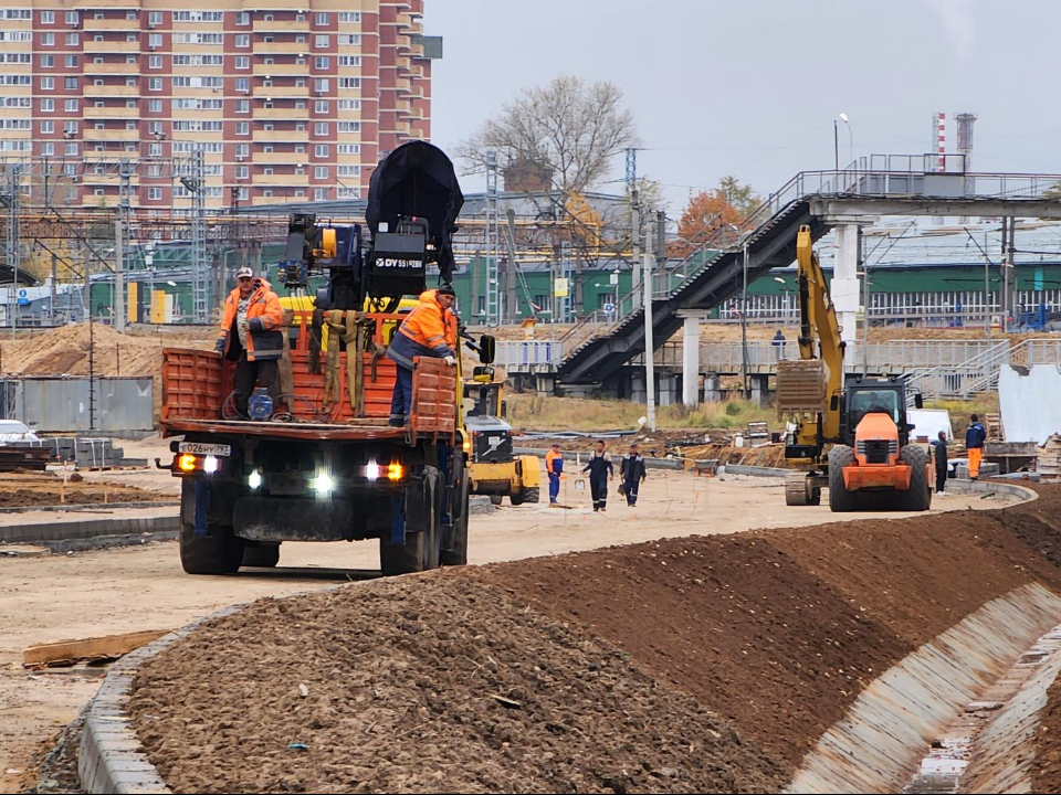 На строительном участке работают 15 человек и 10 единиц техники, включая экскаваторы, катки и погрузчики. Асфальтоукладочный комплекс планируется задействовать в районе 20-х чисел октября.